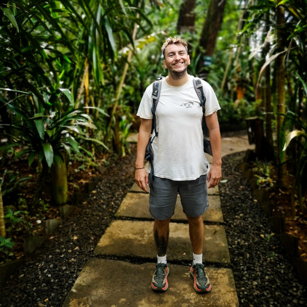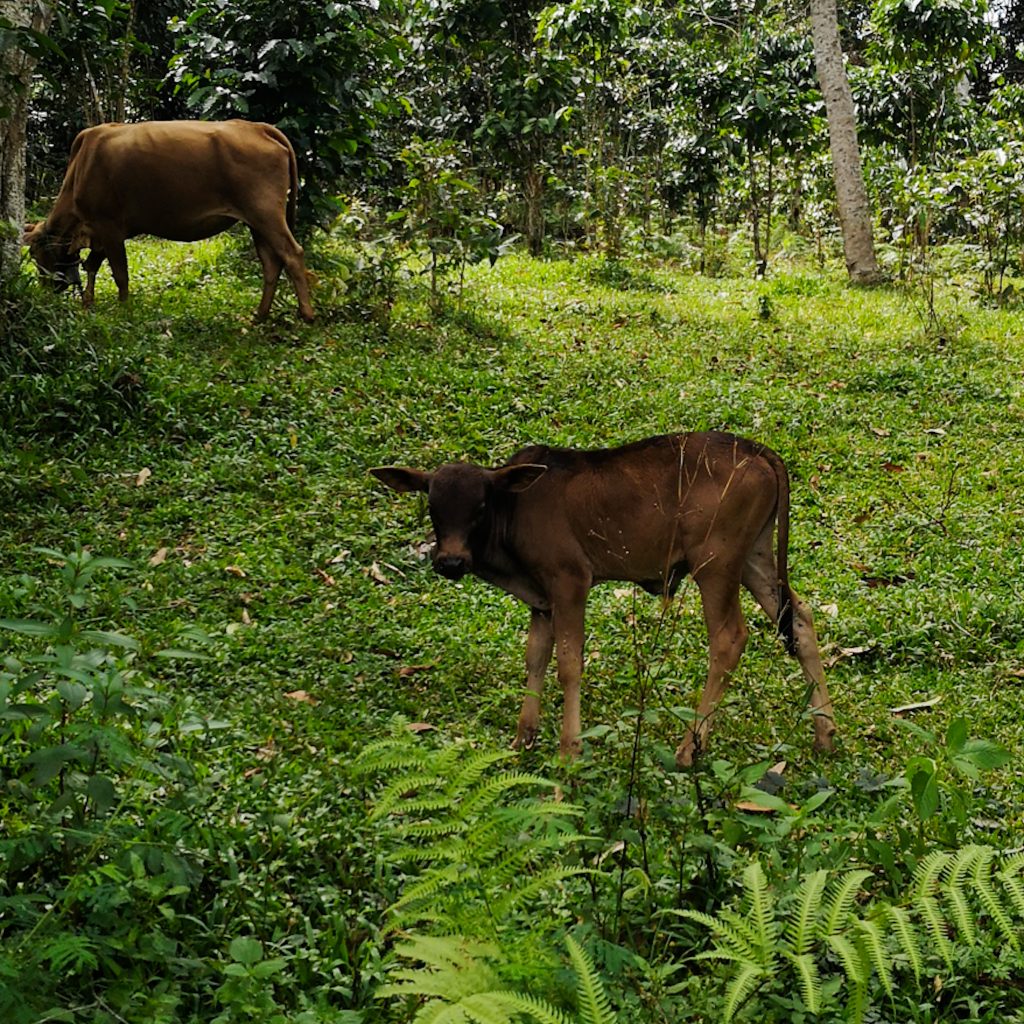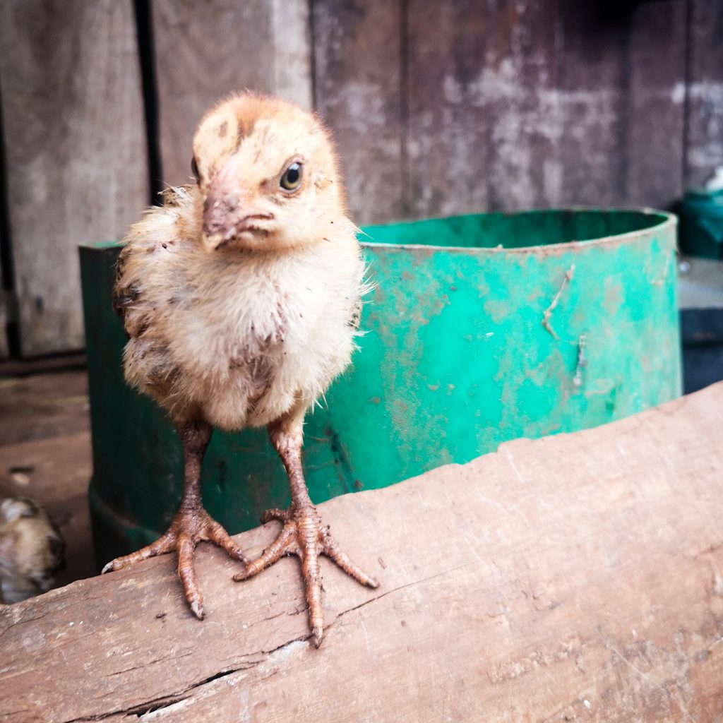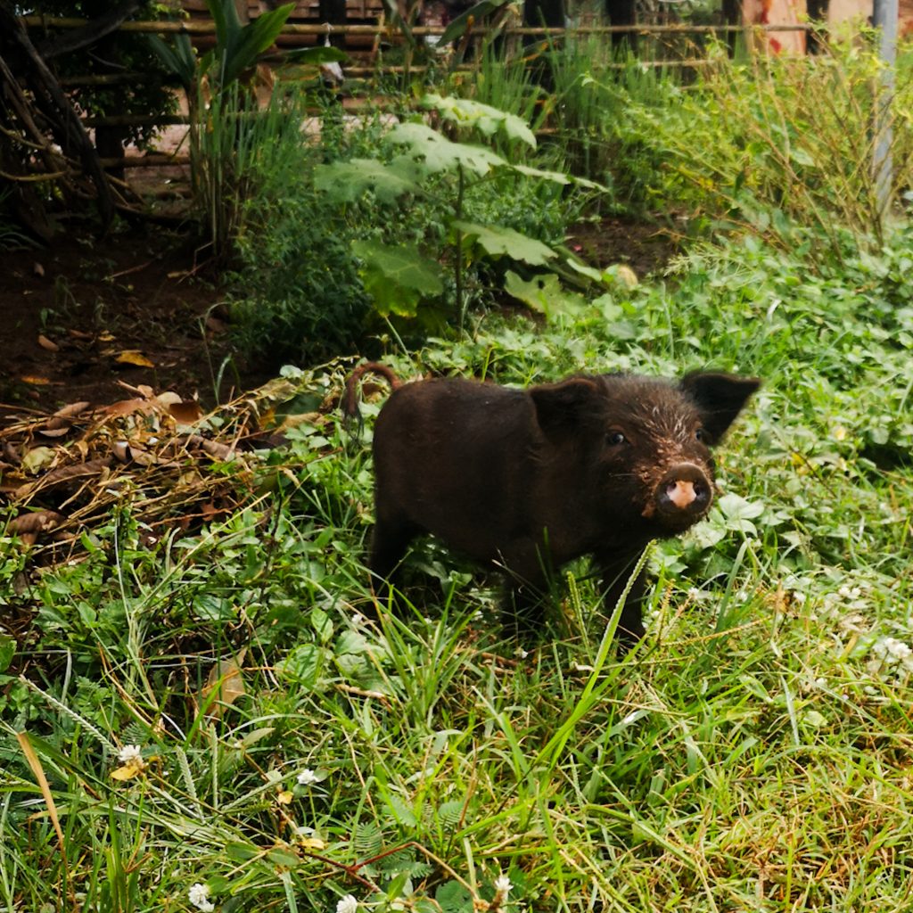 Wir können uns eher für die Verkostung von frischen Erdnüssen und frischer Tamarinde begeistern. Die Erdnüsse sind noch nicht reif und schmecken eher nach rohen grünen Erbsen, bei der Tamarinde ist es ähnlich. Die Kaffeekirsche ist hingegen leicht süßlich und schmeckt gar nicht schlecht. Beim Maniok erklärt er uns, welcher Teil verkauft wird und wie man aus dem Stiel simpel eine neue Pflanze züchten kann: Man nehme einfach den abgebrochenen Stiel und stecke diesen mit Wachsrichtung nach oben wieder in die Erde. Maniok wird hier sehr viel gegessen. Unter anderem wird auch Maniokmehl hergestellt. Auf dem Rückweg begegnen wir noch einer kleinen Hühner-Familie und Schweinchen. Letzteres zur großen Freude von Caro. Mann sind die kleinen Schweinchen süß 🐷☺️ Am Ende bekommen wir noch ein Armband geschenkt und dann treten wir den letzten Teil unserer Strecke an.