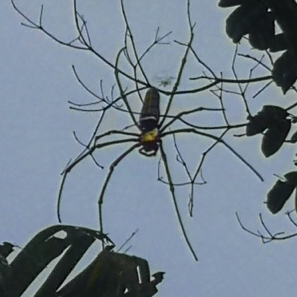 Wir wechseln noch einmal zu einem weiteren Aussichtspunkt, als Caro ein Spinnennetz ins Auge fällt. Es hängt über dem Weg und ist riesig. Ebenso riesig wie die darin sitzende. Spinne – bahh. Sie ist größer als Konstis Hand und sieht wenig freundlich aus. Wir sind dennoch fasziniert und begutachten sie aus sicherer Entfernung. Das Foto wird aufgrund der Entfernung leider unscharf, die Kamera haben wir aufgrund unseres kleinen Gepäcks natürlich nicht dabei.