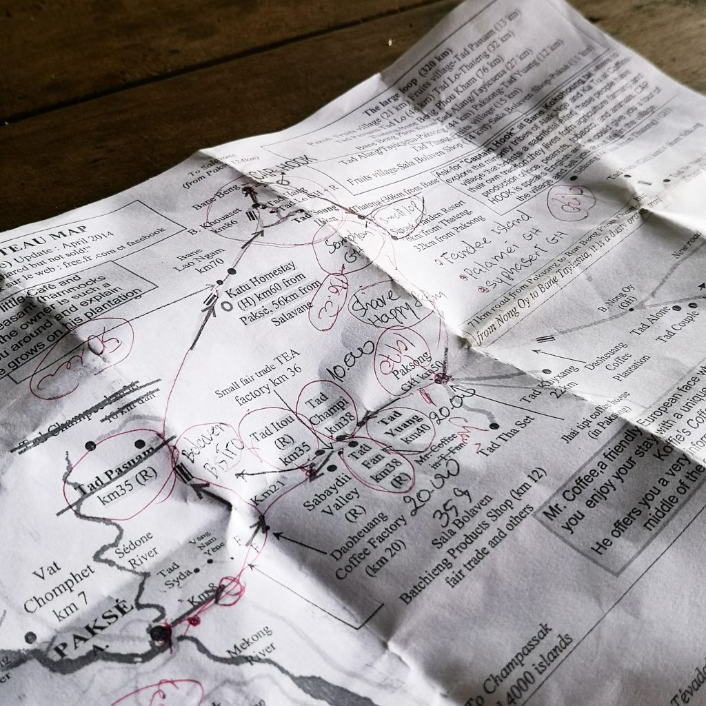 Jetzt, wo wir das mit den Wasserfällen für heute abgehakt haben, kommen wir nochmal zu einer ganz grundlegenden Frage. Wo sind wir eigentlich und wieso wird hier überall Kaffee angebaut? Das Bolaven-Plateau ist eine 1.200 Meter hoch gelegene und 10.000 km² große Hochebene in Laos. In der Region wird hauptsächlich Landwirtschaft betrieben: Angebaut werden Kautschuk, Kardamom, Pfeffer, grüner Tee und Kaffee, welcher dem Plateau überregional Bedeutung verschafft.