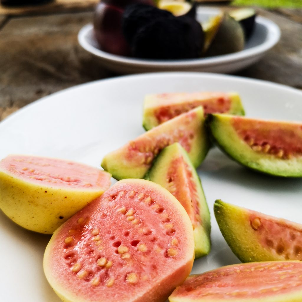 Eine schier endlose Liste und wir sind super fasziniert, dass all das hier angebaut werden kann. Zwischendurch probieren wir immer wieder Früchte. So auch zum ersten Mal frische Kaviarlimetten und zum ersten Mal frische Guave. Nai erklärt uns, dass er die Orangen mit einer Plastiktüte umwickelt, damit keine Tiere dran gehen, so bleibt quasi alles schön bio. Nach bio sieht der Baum so zwar nicht mehr aus, aber es scheint ja zu funktionieren. Nai ist hingegen erstaunt, wie teuer Avocados in Deutschland sind. Sein voll behangener Baum ist quasi eine kleine Goldgrube. Er betreibt den Anbau mit sehr viel Leidenschaft und auch die neuen Pflanzen ziehen sie sich aus kleinen Ablegern heran.