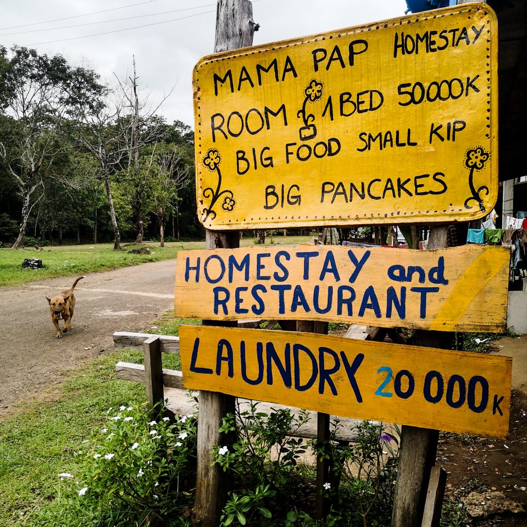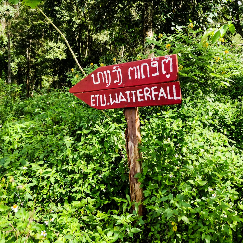 Tad Lo Village ist ein kleines Dorf im Norden des Loops. Genau dieses Dorf hat Luang eingekreist: Hier müsst ihr euren Roller unbedingt im einem Hostel oder einem Restaurant unterstellen und abschließen. Dann ab zu Mama Pap, denn hier gibt’s: Big Food and big pancakes for small kip. Wenn das mal kein verlockendes Angebot ist. Das kleine und einfache Homestay liegt direkt in der Nähe des ersten Wasserfalls. Wir stellen unseren Roller unter das Vordach und schauen uns nach Mama Pap um. Dann kommt sie um die Ecke, eine kleine, schlanke und ältere Frau. Sie erklärt uns, wie wir zum Wasserfall kommen und lädt uns ein, danach noch auf einen Kaffee und etwas zu Essen einzukehren. Na klar, den big pancake wollen wir uns natürlich nicht entgehen lassen. Aber erstmal starten wir zum Wasserfall.