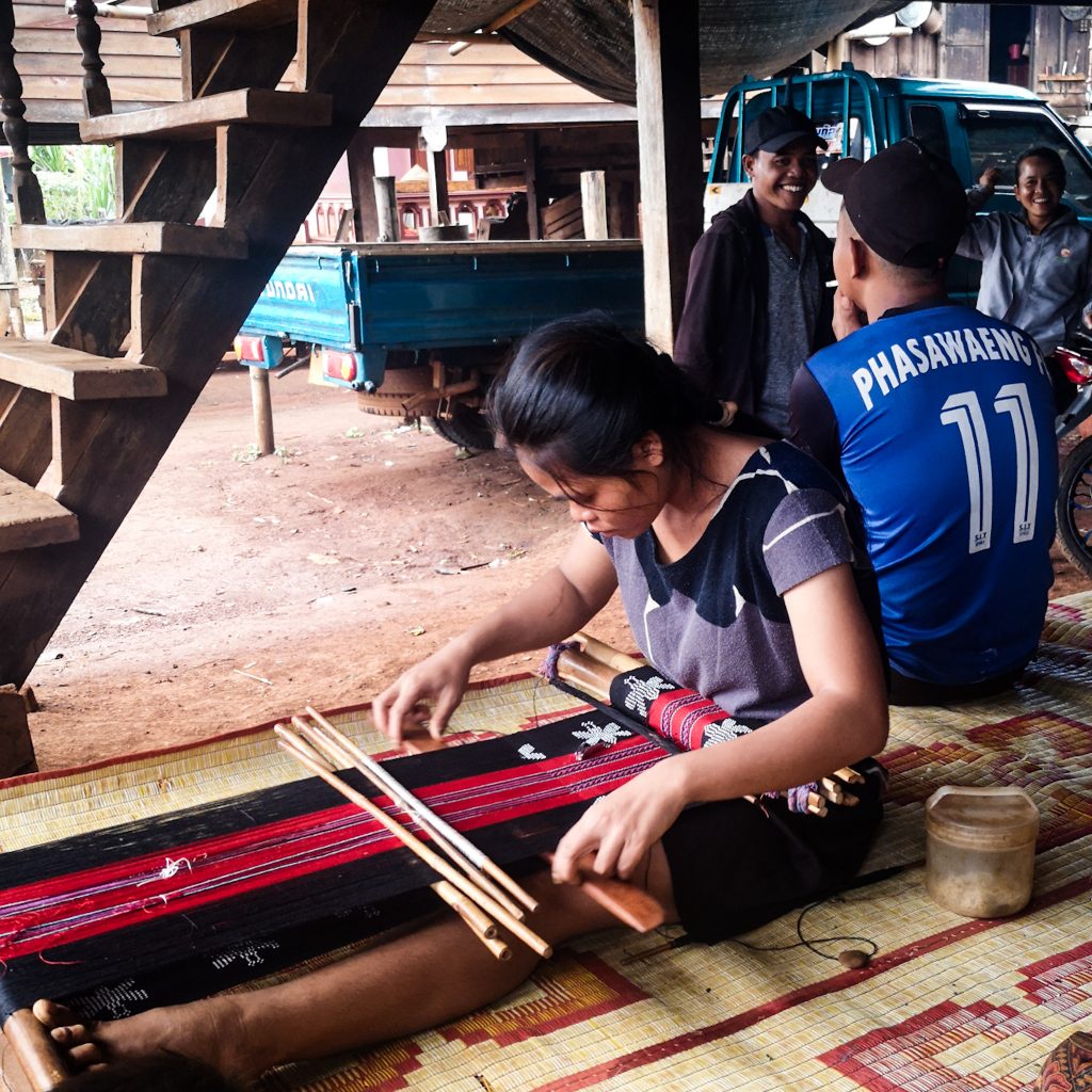Dak ist die großherzige Dame des Hauses. Sie lächelt immer ganz freundlich, macht tausend Dinge gleichzeitig, vergisst dabei die ein oder andere Sache und entschuldigt sich dann ganz aufgeregt. Fair enough, sie managed den Haushalt, viele Kinder (wie viele genau zu ihr und Som gehören haben wir bis zum Ende nicht durchblickt), viele Gäste (und dann auch noch zum Großteil Französ:innen!!!) und unterhält sich dann auch noch mit uns. Eine ganz ganz nette und liebenswerte Person. Die beiden ermöglichen den Reisenden einen einzigartigen Einblick in das ländliche Leben in Laos. Sie bieten auch Touren mit Traktoren und Kochkurse an, aber leider haben wir nur Zeit hier eine Nacht zu verbringen. Zum Abendessen gibt es übrigens Sticky Rice, Gemüse mit dunklen Pilzen und Maniokpüree. Dann kommt noch etwas Rührei dazu. Zum Nachtisch wird noch gezuckerter Maniok gereicht. Auch sehr interessant. Irgendwann verabschieden wir uns ins Bett. Die Wände sind so dünn, dass wir quasi jedes geflüsterte Wort auf der anderen Seite verstehen. Wir schlafen trotzdem ganz hervorragend.