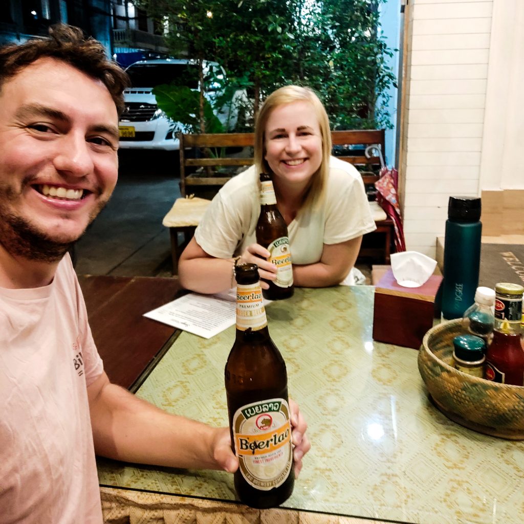 Es wird langsam dunkel und wir sehnen uns nach einer Dusche. Im Hostel angekommen, begrüßt uns Luang freudestrahlend. Sie ist wie immer bei bester Laune und freut sich, dass wir so viele schöne Orte gesehen haben. Sie kümmert sich netterweise um unsere Bustickets für die Weiterfahrt. Um das mal kurz einzuordnen: Das Weiterreisen ist in Südostasien so viel einfacher, als es noch in Zentralasien gewesen ist. Hier können die Hostels alles für einen schnell und einfach organisieren, meistens sogar mit direktem Tuk-Tuk-Pickup am Hostel. Auch kann man in fast jedem Hostel seine Wäsche waschen lassen, was noch in Indien und Pakistan ein Riesenaufwand dargestellt hat. Das alles natürlich gegen einen kleinen Aufpreis, der, wenn man nicht so wie wir gerade auf Budget reist, gar nicht mal so hoch ist.