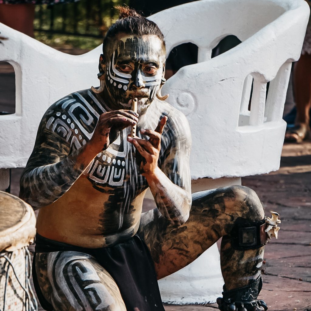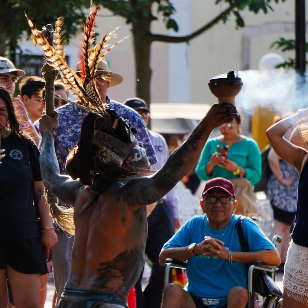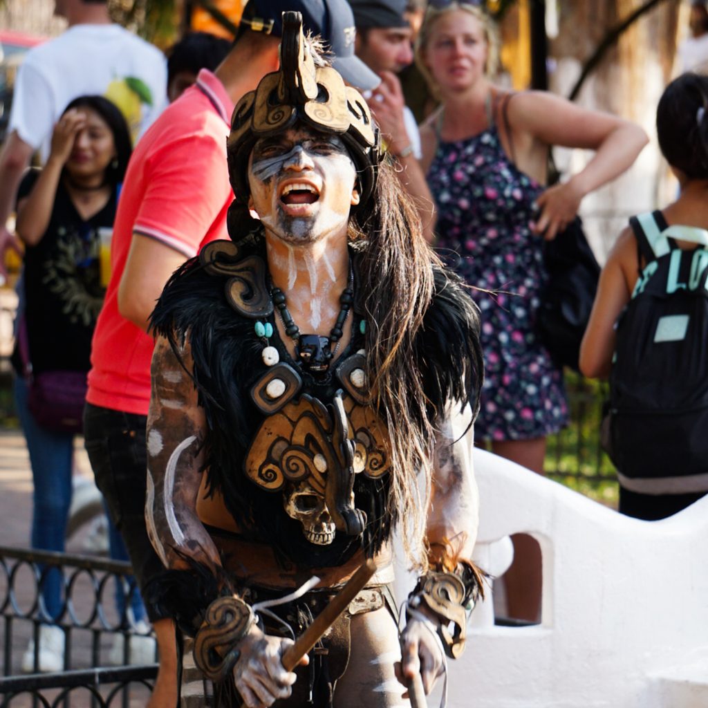 Wir laufen einen großen Schlenker durch kleine Straßen und kommen am Ende am zentralen Marktplatz raus. Wow, das ist um einiges touristischer als vor knapp 5 Minuten. Hier scheinen sich die Besucher:innen der Stadt zu tummeln. Auf dem Platz findet auch gerade eine Art Maya-Show statt, die wir uns eine Weile anschauen. Ansonsten ist es ganz nett, aber auch nicht weiter spektakulär.
