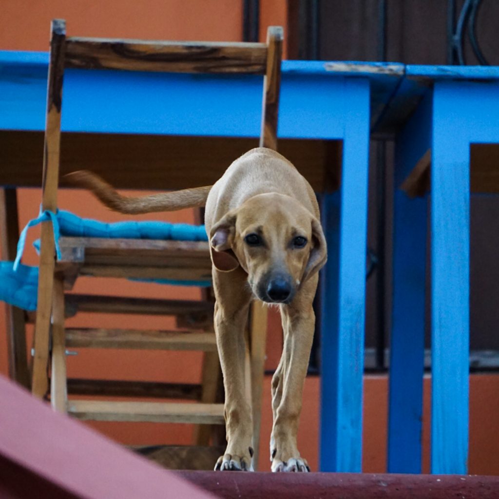 Wir schlendern wieder zurück zum Hostel und freuen uns auf Pasta mit Tomatensauce. Mal wieder, aber es ist und bleibt ein Dauerbrenner. Somit verarbeiten wir auch noch die letzten Tomaten aus San Cristóbal, die ihre besten Zeiten schon hier sich haben. Das ist optimistisch ausgedrückt, aber wegschmeißen wollen wir sie natürlich nicht. Das beste an unserem Hostel ist übrigens der junge und deshalb noch recht räubermäßige Wauzi, der uns in Gesellschaft leistet, wenn wir im Hinterhof sitzen, naja, eigentlich beißt er uns abwechselnd in die Beine oder in die Klamotten und will spielen.