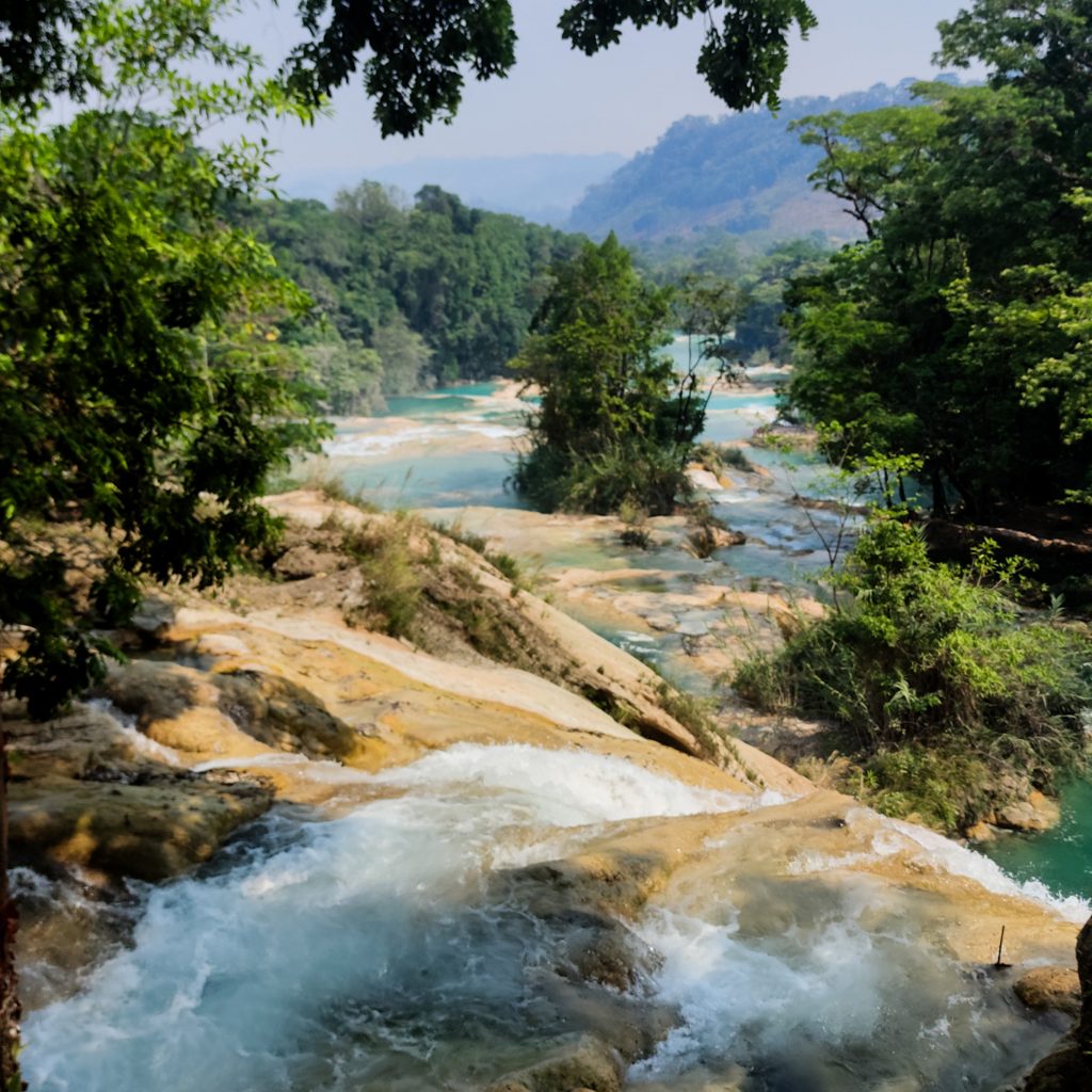 Der Wecker klingelt um 3.45 Uhr. Moin! Entgegen unserer Erwartungen gibt es trotzdem schon Kaffee und Frühstück im Hostel, das ist echt der Wahnsinn. Hätten wir das mal gewusst. Schnell kippen wir uns einen Kaffee runter und essen in höchster Geschwindigkeit eine Schüssel Müsli. Neben uns hat noch eine französische Familie mit zwei Kindern und ein italienisches Paar die heutige Tour gebucht. Es gibt nämlich zwei Optionen für uns, um nach Palenque zu kommen. Mit dem (Nacht-)Bus oder mit einer Ausflugstour, die drei Ausflugsziele ansteuert (Agua Azul, einen Wasserfall und die Maya Stätte in Palenque). Wir entscheiden uns für die Tour, wobei wir statt wieder zurück zu fahren einfach in Palenque aussteigen und von dort aus weiterfahren.