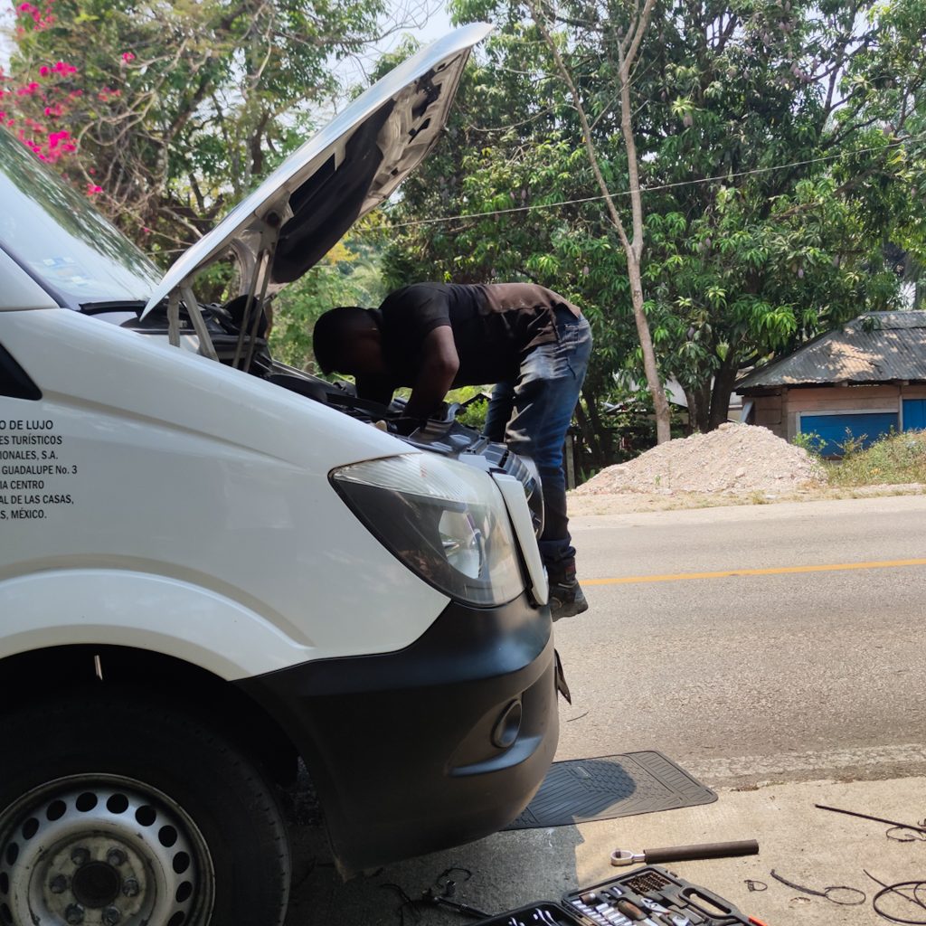 Wir halten mitten im Nirgendwo am Straßenrand an. Wir haben eine Panne. Nach einer Minute ausharren im Auto steigen wir alle neugierig aus. Vor dem Auto liegt ein verschlissenes Gummiband, das sind wohl die Überreste des Keilriemens. Zuversichtlich beobachten wir, wie der Fahrer einen neuen Keilriemen aus einer Kiste zaubert. Okay, das scheint also nicht wirklich ein größeres Problem darzustellen. Ganz so einfach ist es dann aber doch nicht. Wir schauen nicht auf die Uhr, aber wir verharren hier, bei bestimmt guten 38 Grad, über eine Stunde in der Sonne. Der anfängliche Optimismus unsererseits, verfliegt etwas, als wir sehen, wie der Fahrer sich YouTube Videos für die Reparatur anschaut. Außerdem will er erst abwarten, bis das Fahrzeug etwas abgekühlt ist. Das dürfte dann wie lange dauern? Immer wieder halten Autos an und bieten ihre Hilfe an. Irgendwann ist ein Mann dabei, der zwar nur auf der Stoßstange stehend ins Auto schauen kann, aber zum einen einen Werkzeugkoffer dabei hat und auch etwas besser im Bilde ist.