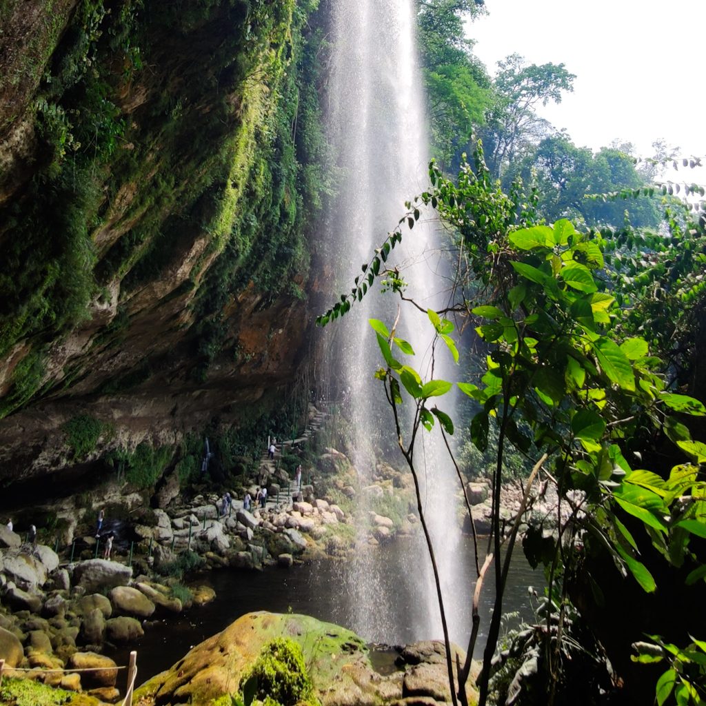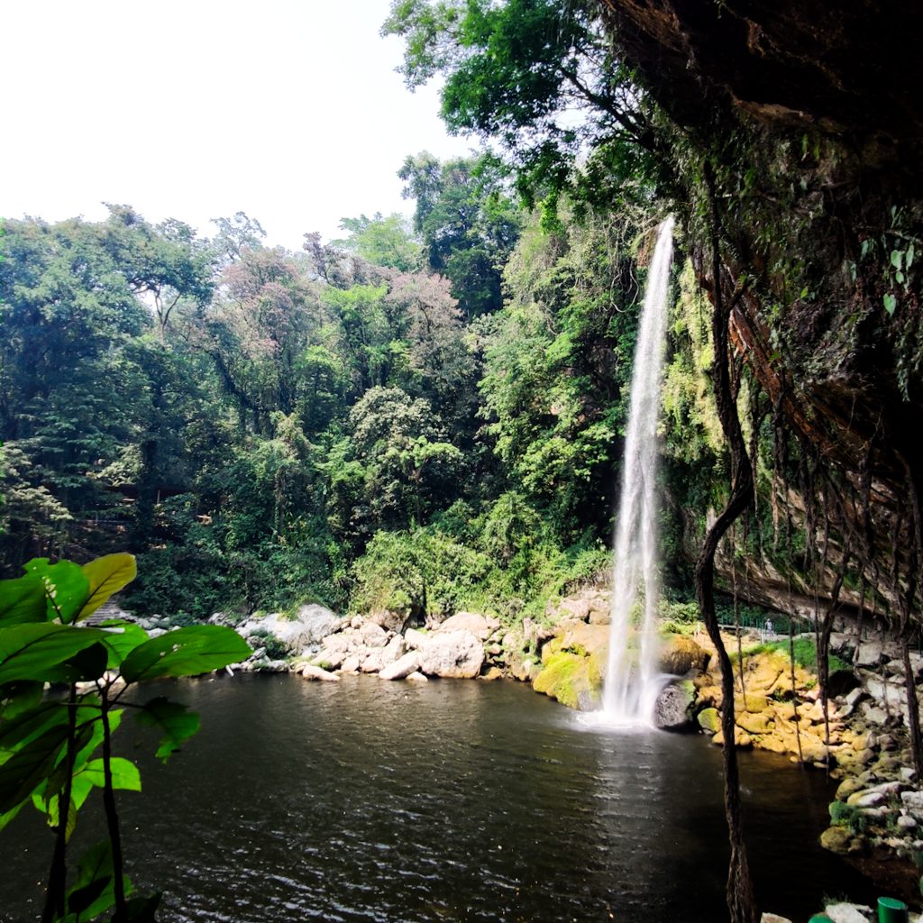 Wir sind im Zeitverzug, daher fällt der Abstecher zum Wasserfall kurz aus. 20 Minuten haben wir hier. Schnellen Schrittes laufen wir zum Wasserfall, sichten einen Affen und laufen schnellen Schrittes den Weg hinter dem Wasserfall entlang. Schön, wirklich schön ist es hier, aber so richtig Zeit zum Genießen haben wir nicht. Für Fotos hingegen reicht die Zeit. Deutsch wie wir sind, kommen wir pünktlich zum Bus zurück. Andere nehmen es nicht ganz so genau, auf das letzte Pärchen müssen wir noch über 10 Minuten warten. Naja, Reisen in Gruppen halt.. 🤷🏼♀️🤷🏻♂️