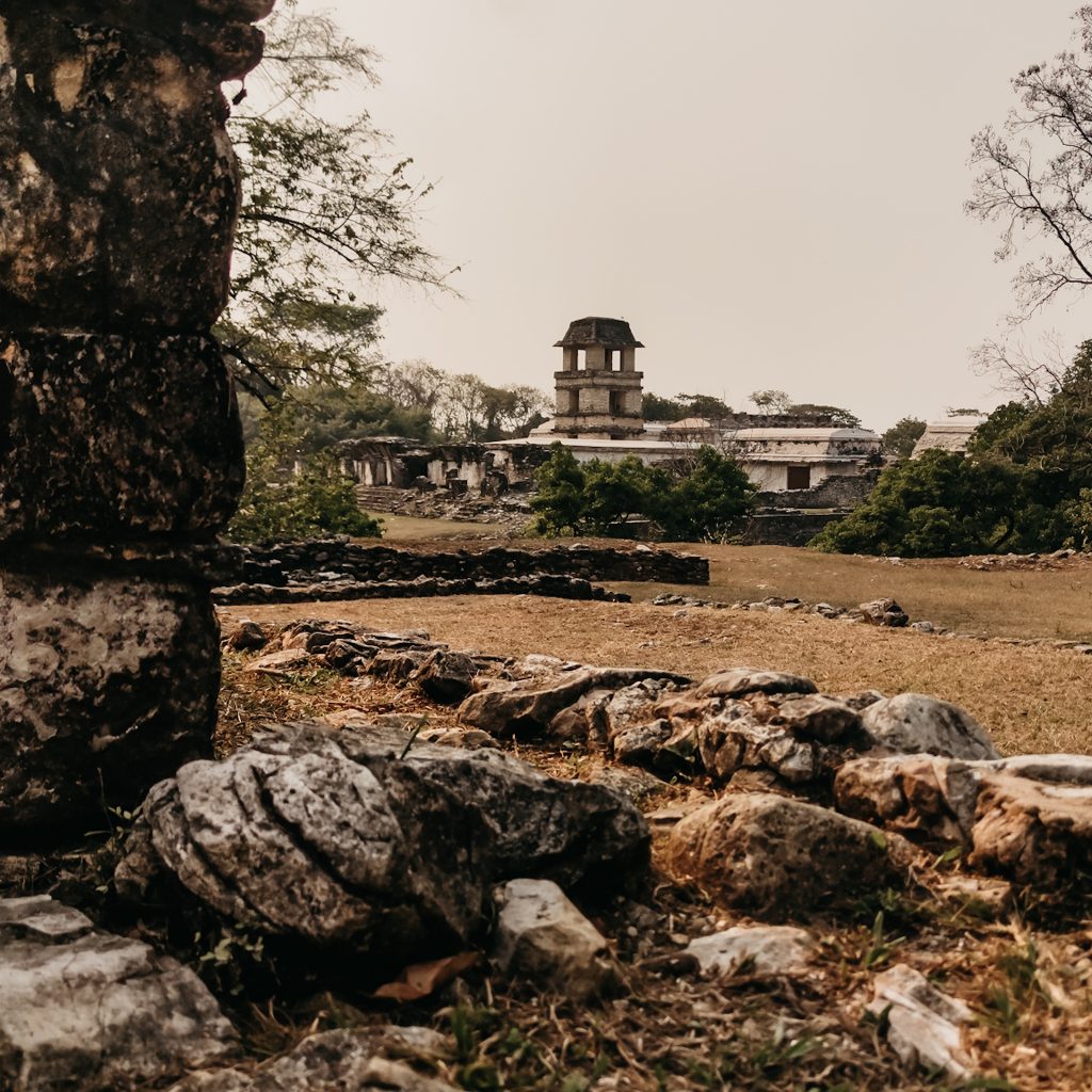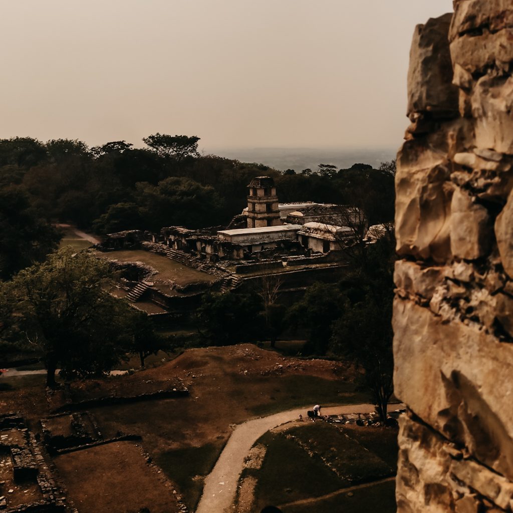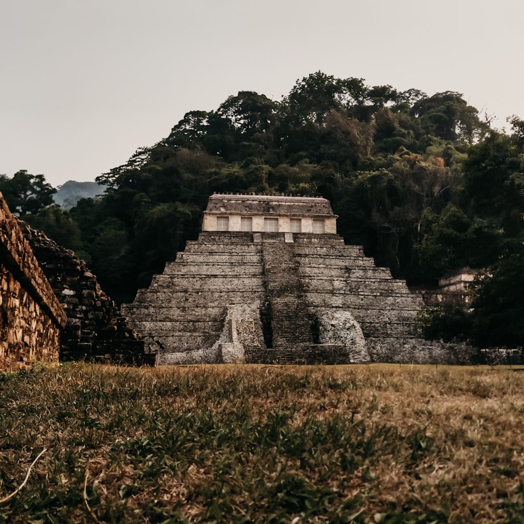 Auf einem Hochplateau, am Fuße einer Hügelkette, umgeben von tropischem, immergrünem Regenwald, liegt Palenque, die erhabene Ruinenstadt der Maya-Kultur. Dutzende Gebäude, Pyramiden und Tempel verteilen sich auf der Lichtung und tief im Dschungel von Chiapas verborgen. Das bekannteste Bauwerk von Palenque ist der „Templo de las Inscripciones“ (Tempel der Inschriften). Der Name kommt, wenig überraschend, von eingeritzten Hieroglyphen. Erst 1952 fanden Archäolog:innen im Inneren des Tempels eine etwa 20 m lange Treppe, welche Zugang zu einer Krypta verschaffte. Unter einer Kalksteinplatte, die mehrere Tonnen schwer war, fanden sie einen Sarkophag. Hier lag wahrscheinlich König Pakal, ein wichtiges Oberhaupt der Geschichte von Palenque. Beim ihm wurden viele wertvolle Gegenstände und jede Menge Jadeschmuck gefunden. Das Wahrzeichen der Maya-Stadt ist wohl das größte Gebäude, der sogenannte Palast. Hier gab es richtige Wohnungen für die Adligen und Priester, die über verschiedene Räume miteinander verbunden waren. Durch Innenhöfe schafften die Erbauer eine natürliche Lichtquelle. Noch heute erkennt man künstlerisch ausgearbeitete Dekorationsmotive auf den Pfeilern. Irgendwie finden wir diese Vorstellung schon ein bisschen verrückt. Auf den Templo de la Cruz kann man auch heute noch steigen und hat von dort eine wunderschöne Aussicht auf das restliche Gelände, den Dschungel und die weiteren Tempel.