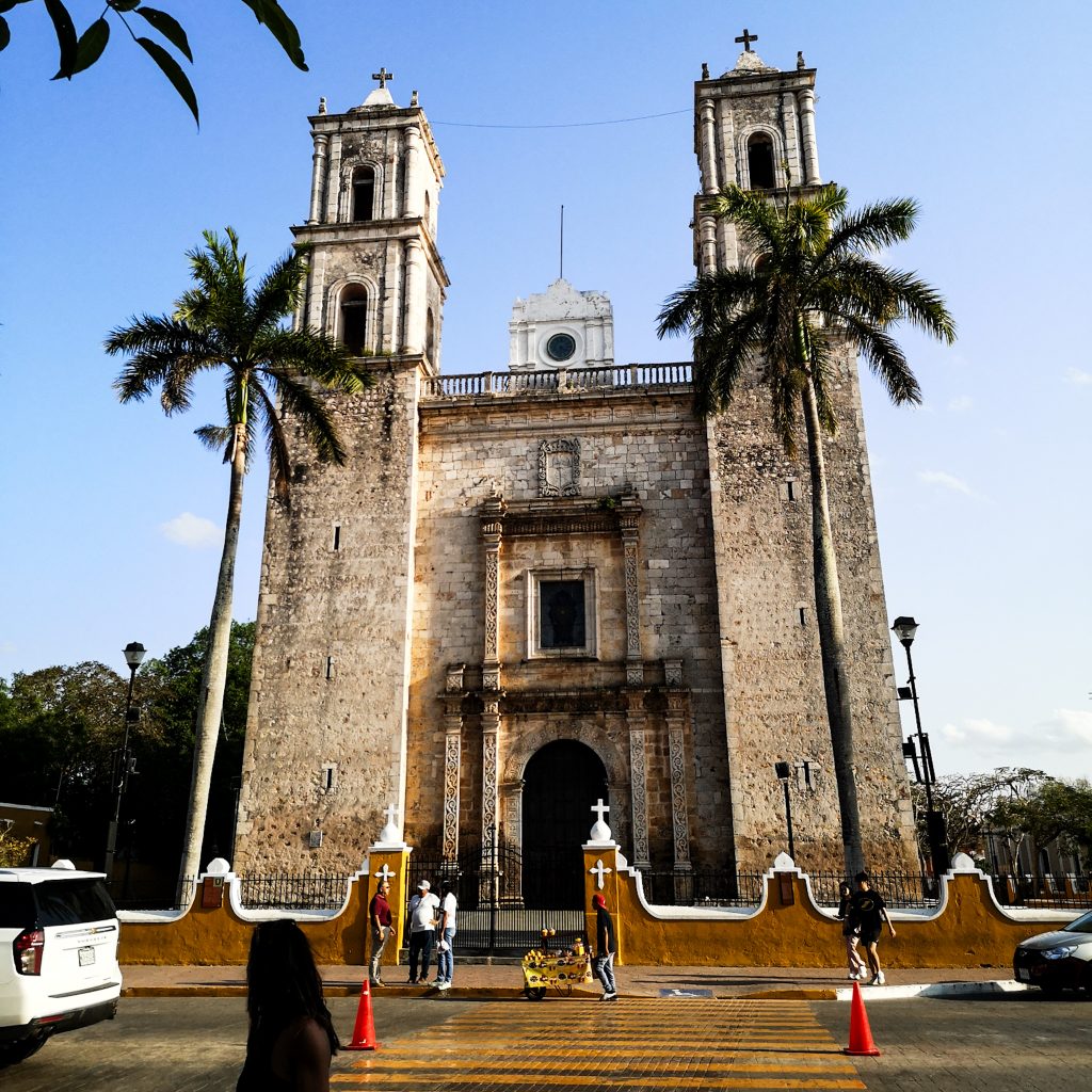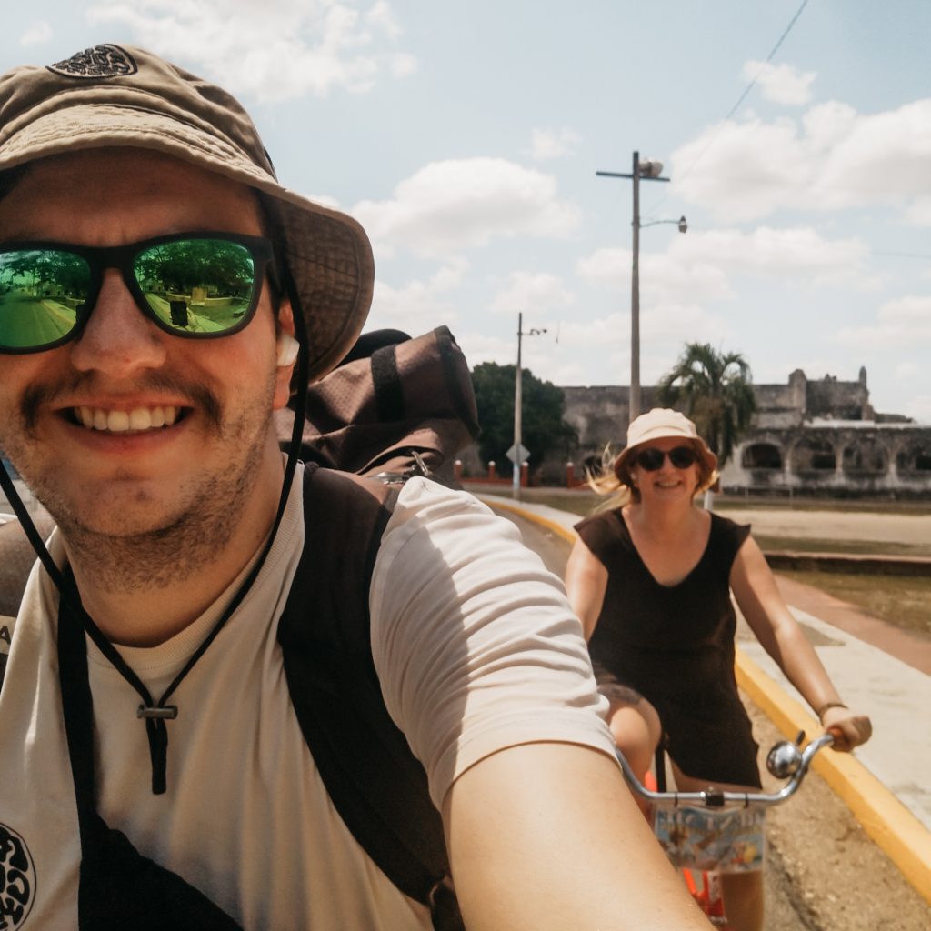 Wir kommen an und werden mit morgendlicher Hitze in Empfang genommen. Zu Fuß können wir zu unserer Unterkunft laufen und werden nett von einer Volunteer begrüßt. Wir können zwar noch nicht einchecken, machen es uns aber im Hostel bequem. Soweit man es sich eben bei 38 Grad auf einem Sofa bequem machen kann. Ein kleiner Ventilator gibt sein bestes, aber irgendwie ist es doch nur ein Tropfen auf den heißen Stein. Wir sind echt kaputt und wollen den Tag heute ganz entspannt angehen lassen. Wir müssen die nächsten Tage planen und entscheiden, ob wir hier noch eine Nacht länger bleiben wollen. Was uns hier im Hostel sofort auffällt, es sind ziemliche viele Volunteers hier, eigentlich mehr als Gäste. Es gibt eine Küche, das Frühstück ist inklusive und nach hinten gibt es sogar einen Innenhof. Das einzige, was uns wundert, ist, dass wir noch bis zum Checkin warten, obwohl unsere Betten eigentlich schon frei sind. Egal, die Dusche kann noch ein kleines bisschen warten. Der Hunger treibt uns irgendwann in den Supermarkt. Auf dem Weg laufen wir noch an einem Fahrrad Verleih vorbei und checken schonmal die Preise aus. In und um Valladolid gibt es nämlich zahlreiche Cenoten. Cenoten sind mit Süßwasser gefüllte Karsthöhlen, deren Decke oftmals eingestürzt ist und man dadurch eine oben offene Höhle hat – ein Naturfreibad der Premium-Kategorie. Die Maya nutzten die Cenoten auch schon für allerlei Rituale, heute sind sie meistens Touristenattraktionen. Viele von ihnen kann man mit dem Fahrrad erreichen. Das ist wohl der kostengünstigste Weg, vielleicht aber nicht der cleverste. Zumindest nicht bei fast 40 Grad und Sonnenschein. Wir kaufen ein, essen, bringen unsere Wäsche weg, duschen und können uns dann nochmal aufraffen einen kleinen Spaziergang durch die Stadt zu starten.
