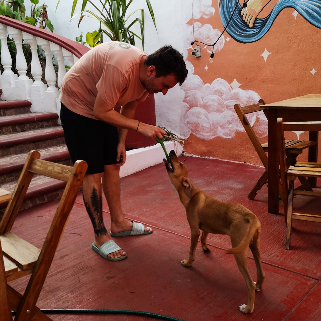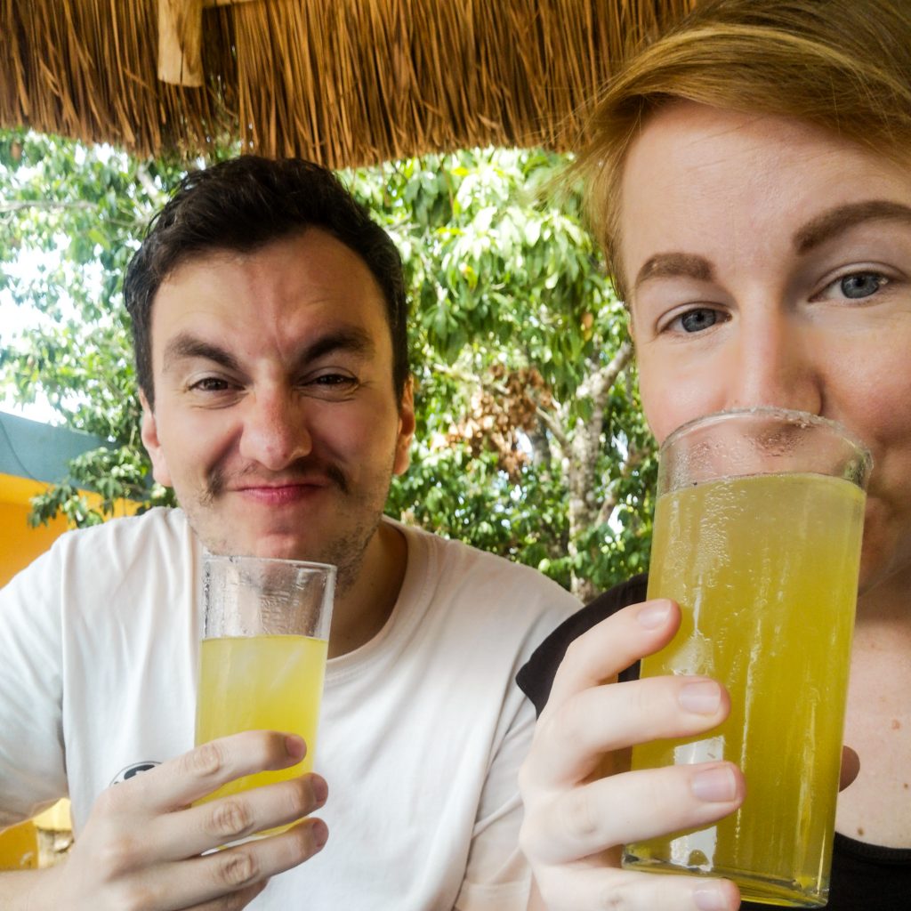 Eigentlich wollen wir uns noch eine Kugel Eis kaufen, bei einem stolzen Preis von 75 Pesos pro Kugel, verzichten wir doch lieber. Es geht wieder zurück zur Unterkunft. Wir erledigen noch ein paar Dinge und holen gegen späten Nachmittag schon unsere Leihräder für den morgigen Tag ab. Damit einkaufen zu fahren ist super entspannt. Wir machen noch einen Abstecher zu einem Obst- und Gemüsemann. Der liegt etwas abseits und schaut uns erst etwas grummelig an. Wir greifen ordentlich zu und kaufen jede Menge Obst und Gemüse. Nachdem Konsti den Gemüsemann auf sein Chicharito-Leverkusen-Trikot anspricht, ändert sich seine Miene schlagartig. Sofort beginnt ein holpriger Smalltalk und wir werden nach dem Bezahlen mit einem Lächeln verabschiedet. Den Abend verbringen wir in der Küche. Heute haben wir mal wieder für Tacos eingekauft, da wir hier noch etwas Zeit haben, können wir die nächsten Tage die Reste aufbrauchen. Heute machen wir eine köstliche Guacamole dazu. Die Avocados sind einfach ein Traum. Die Volunteers schauen uns interessiert zu und eine Französin ist begeistert, dass wir „richtig mexikanisch“ kochen. Naja, ein bisschen zumindest. Dazu wird endlich der letzte Schluck Tequila geleert, den wir noch von unserer Tequila Tour übrig haben. Zu guter letzt schnibbelt Konsti uns noch eine Tupperdose voller Obst für unseren Ausflug morgen. Papaya, Mango und mega erfrischende Grapefruit stellen ein farbenfrohes und köstliches Ensemble dar. Danach verziehen wir uns wieder in den warmen Dorm und gehen früh schlafen.