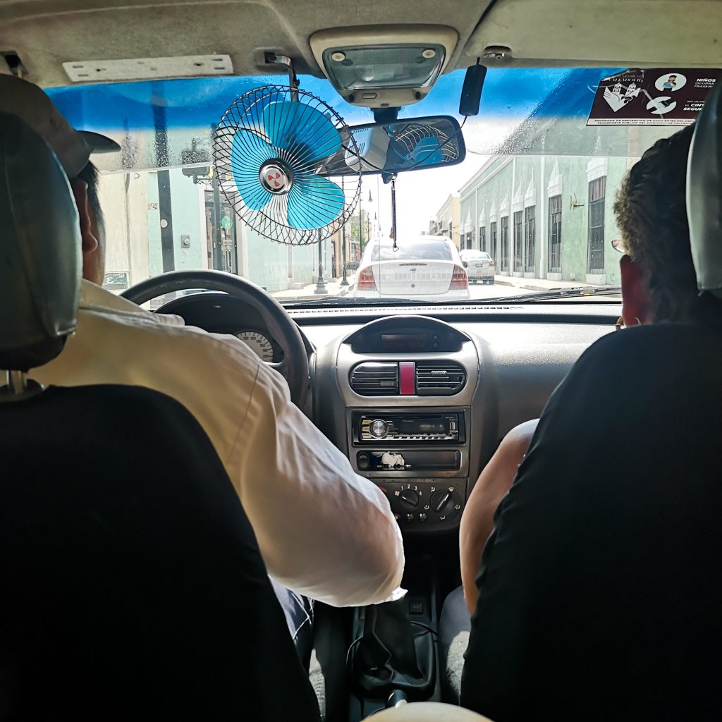 Uns graut etwas vor dem Warten auf das nächste Colectivo. Entgegen unserer Wunschvorstellung wartet dort nämlich noch niemand. Die meisten Leute, die wir sehen, kommen mit Touren an. Dann sichten wir die beiden Holländer, die gerade ihren Mietwagen öffnen. Kurzerhand fragt Konsti, ob sie uns mitnehmen können. Sie wollen allerdings eigentlich nicht zurück nach Valladolid, sondern zu einer Cenote auf der anderen Seite von Valladolid, um das eigentlich eine Autobahn herumführt, sodass man nicht quer durch die Stadt fahren muss. Egal, wir beschließen trotzdem mitzufahren. Lieber an einer Cenote warten als hier am Parkplatz. Die beiden sind auf Urlaubsreise und dafür mit einem Mietwagen unterwegs. Wir unterhalten uns sehr nett und obwohl die beiden noch nicht lange hier sind, können sie schon vom ersten Scamversuch erzählen. Klar, Mietwagen haben einen extra Aufkleber im der Windschutzscheibe. Ein gefundenes Fressen für ausgeklügelte Scamversuche an den Hauptattraktionen. Sie sind nochmal davon gekommen.