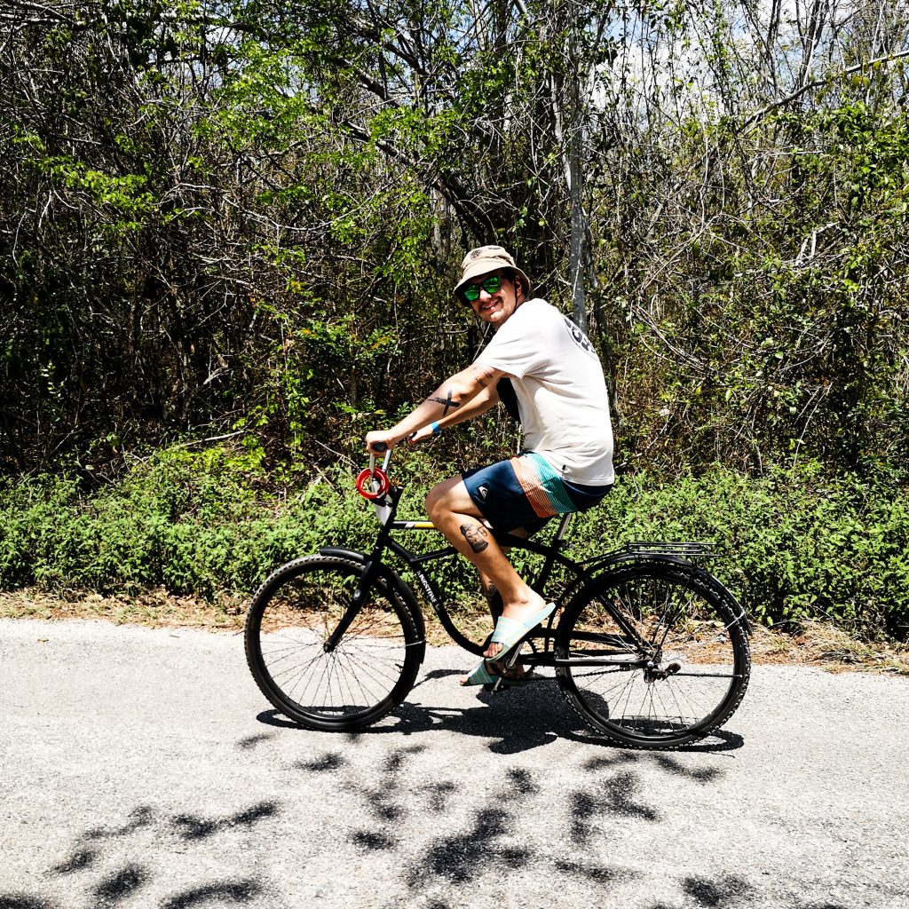 Es ist unfassbar heiß und wir nähern uns der Mittagshitze. Bis zur nächsten Cenote sind ca. 40 Minuten veranschlagt. Eigentlich kein Problem, aber es ist wirklich unerwartet anstrengend. Obwohl wir größtenteils im Halbschatten fahren und selbstverständlich eingecremt sind und Hüte tragen, zieht sich die Strecke.