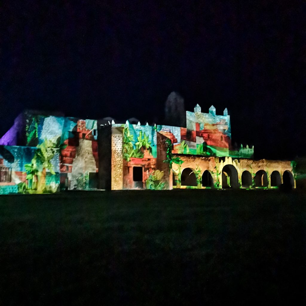 Wir kaufen noch ein paar letzte Kleinigkeiten ein. Heute Abend gibt es ein paar Reste. Außerdem bereiten wir uns wieder ein bisschen Wegproviant im Form von Quesdillas und frischem Obst für den morgigen Reisetag vor. Das Hostel muss den Eindruck haben, dass wir 50 % des Tages mit einkaufen, kochen und essen verbringen. Nicht ganz falsch.. Gegen kurz vor 21 Uhr raffen wir uns nochmal auf und gehen zum alten Kloster. Um 21 Uhr beginnt die abendliche Lichtershow. Wir sind überrascht. Auf der gesamten Frontseite des Klosters wird eine Lichtshow produziert, welche die Geschichte von Valladolid erzählt. Begleitet wird die bunte Projektion von einem Sprecher, der die Bilder nochmal begleitend erklärt. Die Show findet erst auf Spanisch und dann auf Englisch statt.