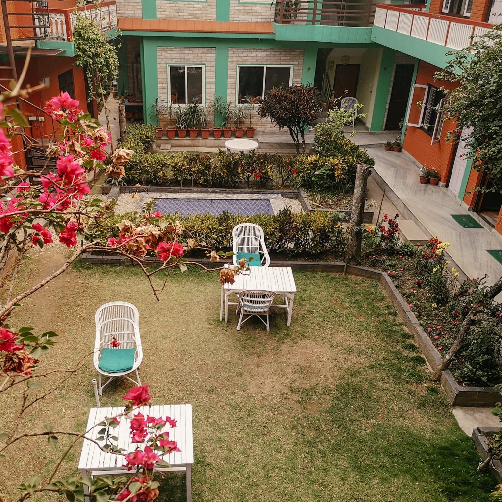 Zurück in der Unterkunft trinken wir im Innenhof einen Tee und beschäftigen uns mit den Blogartikeln und unserer Weiterreise. Netterweise hilft uns der Herr der Unterkunft bei der Buchung der Busse, online können wir dies leider nicht zahlen. So ergattern wir für den nächsten Morgen einen Platz für unseren nächsten Stop: dem Chitwan Nationalpark.