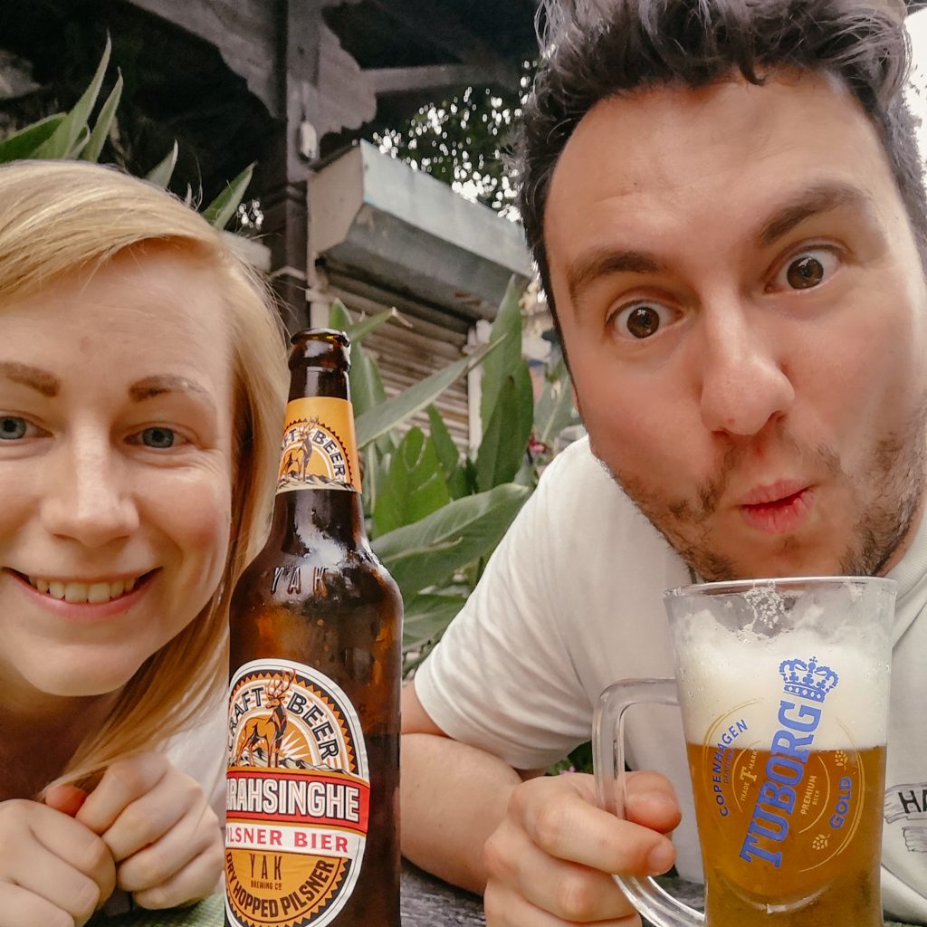 Wir schlendern durch die Straßen und suchen uns ein Café am Straßenrand. Heute ist DER Tag gekommen. Während der letzten Tage haben wir uns auf diesen Moment gefreut (man munkelt, dass es die Möhre vor dem Eselkopf war) – unser erstes Bier in Nepal. Da bietet sich die heutige Festivität doch als passender Anlass, um auf das Jahr 2080 anzustoßen. Und das erste Bier hat es direkt in sich. In der Flasche sind direkt 650 ml und es schmeckt ganz hervorragend. Wir genießen das Kaltgetränk und beobachten das Treiben auf der Straße.