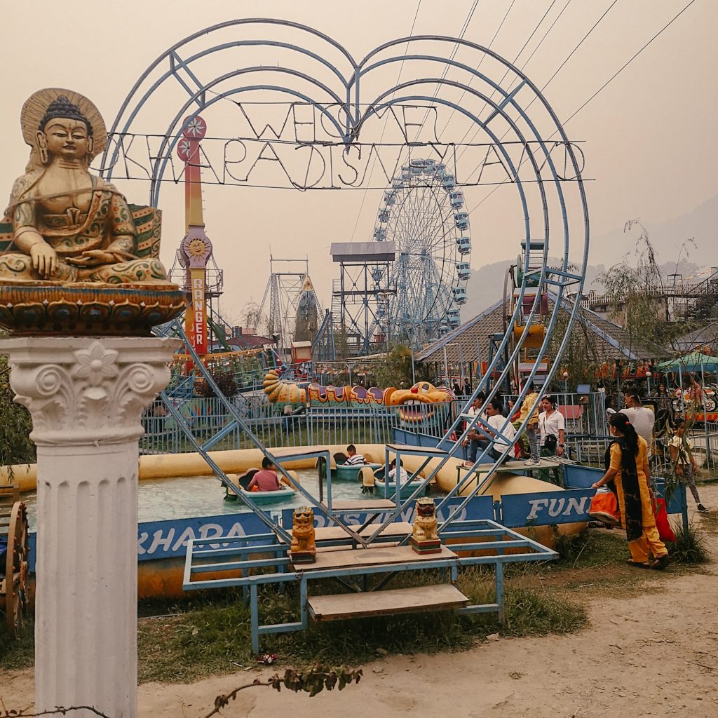Beim Spazieren gehen stoßen wir auf eine Art Kirmes-Friedhof, der wie ein Museum für ausrangierte Fahrgeschäfte aus den 70er Jahren. Wir bestaunen die Oldy Version des Breakdancers und den Auto Scooter. RIP kleiner Caterpillar Express.. Da hatten wir die Rechnung aber ohne die mutigen (man möchte fast sagen waghalsigen) Kinder von Pokhara gemacht. Knappe zwei Stunden später erwachen die Fahrgeschäfte zum Leben und befördern tatsächlich Menschen. Besonders verstörend war dabei das Tempo des Riesenrades, für keine 1000 Rupien wären wir da drauf gegangen. Welcome to Pokhara Disneyland!