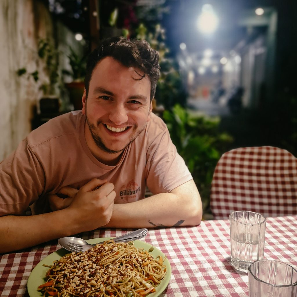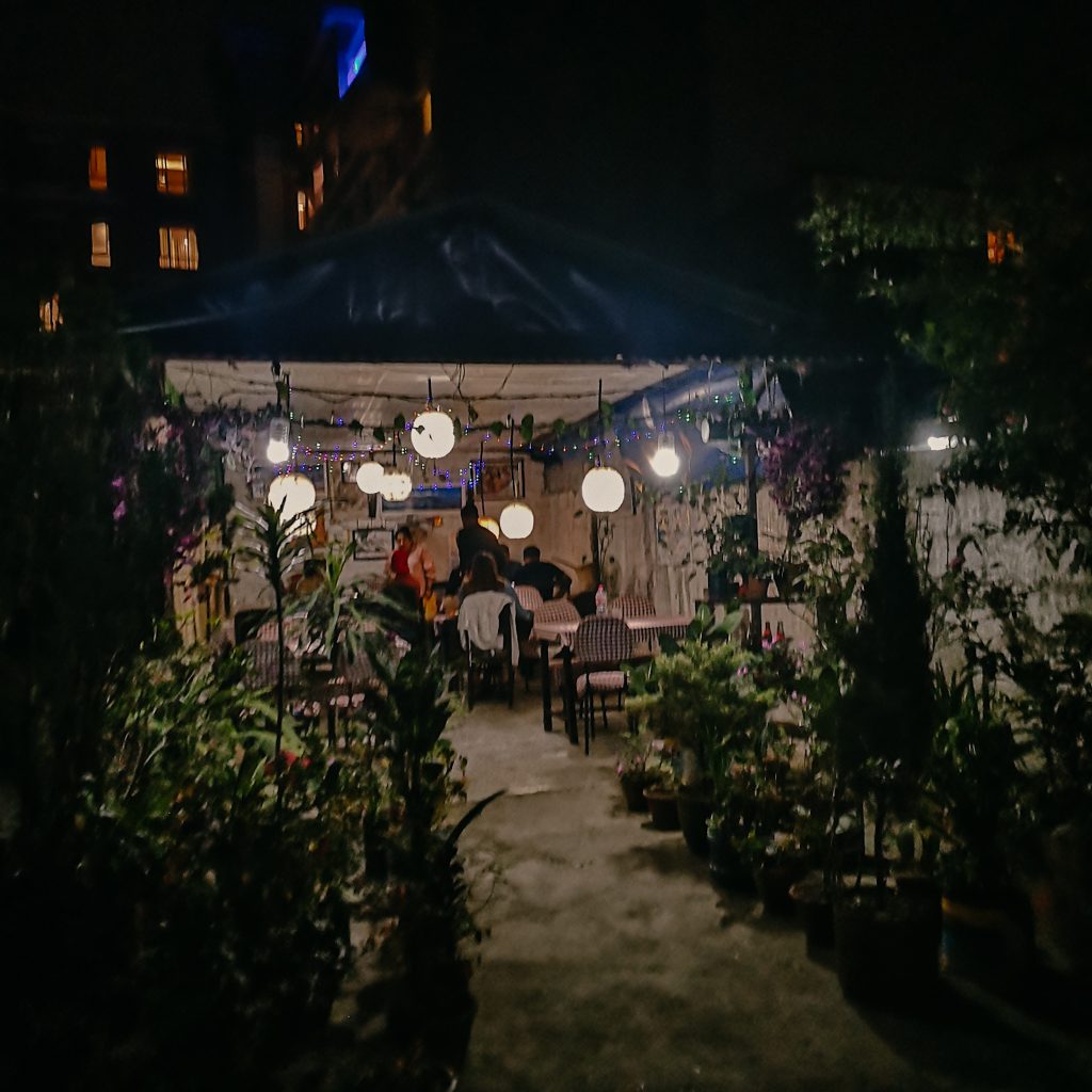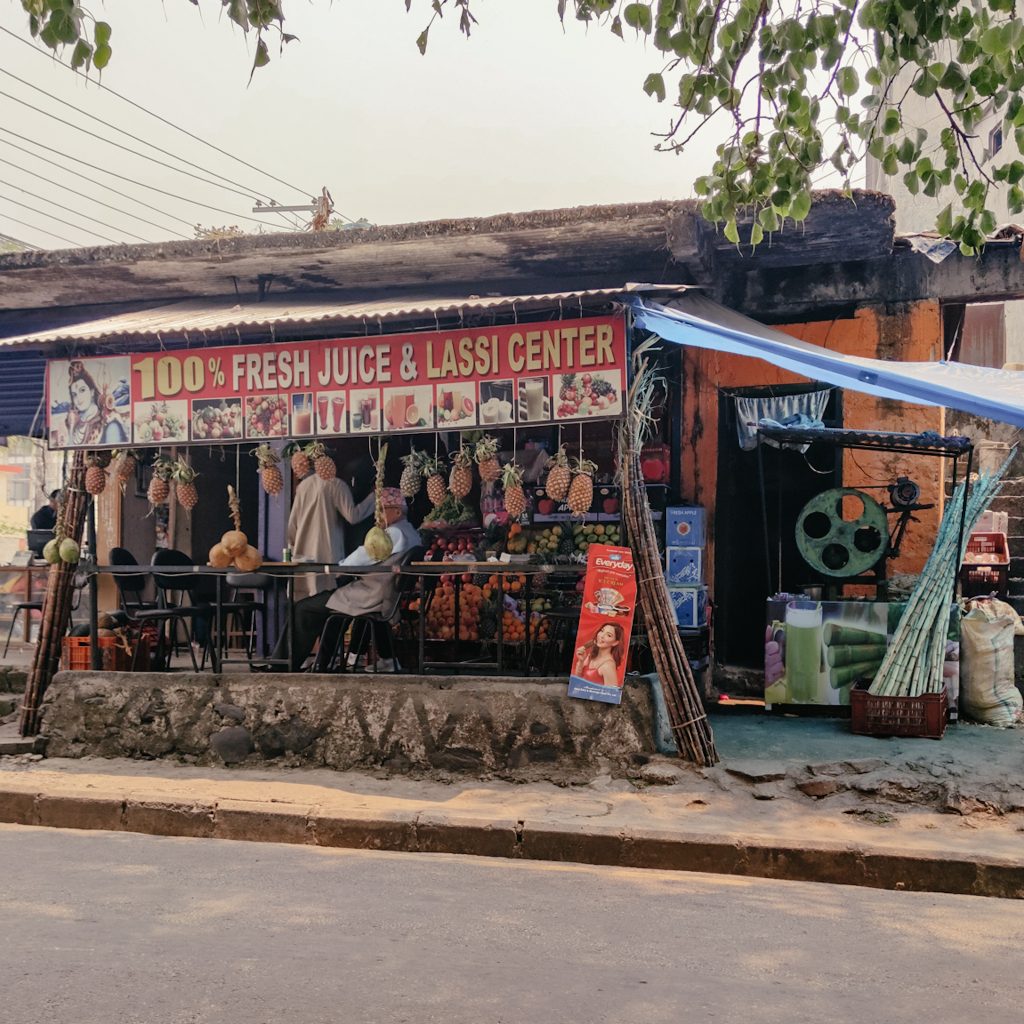 Auf der Suche nach einer Lokalität für das Abendessen verschlägt es uns mal wieder in einen Hinterhof. Hier wird „vegetarisch und frisch gekocht“ verspricht uns der äußerst nette Herr. Gekocht wird (mal wieder) auf 4 qm, der „Gastraum“ ist ein Carport mit ein paar Pflanzen und Lichterketten. Das Abendessen und der frische Mangosaft schmecken köstlich. So köstlich, dass wir wiederkommen. Das ändert auch nicht der Besuch einer Kakerlake.