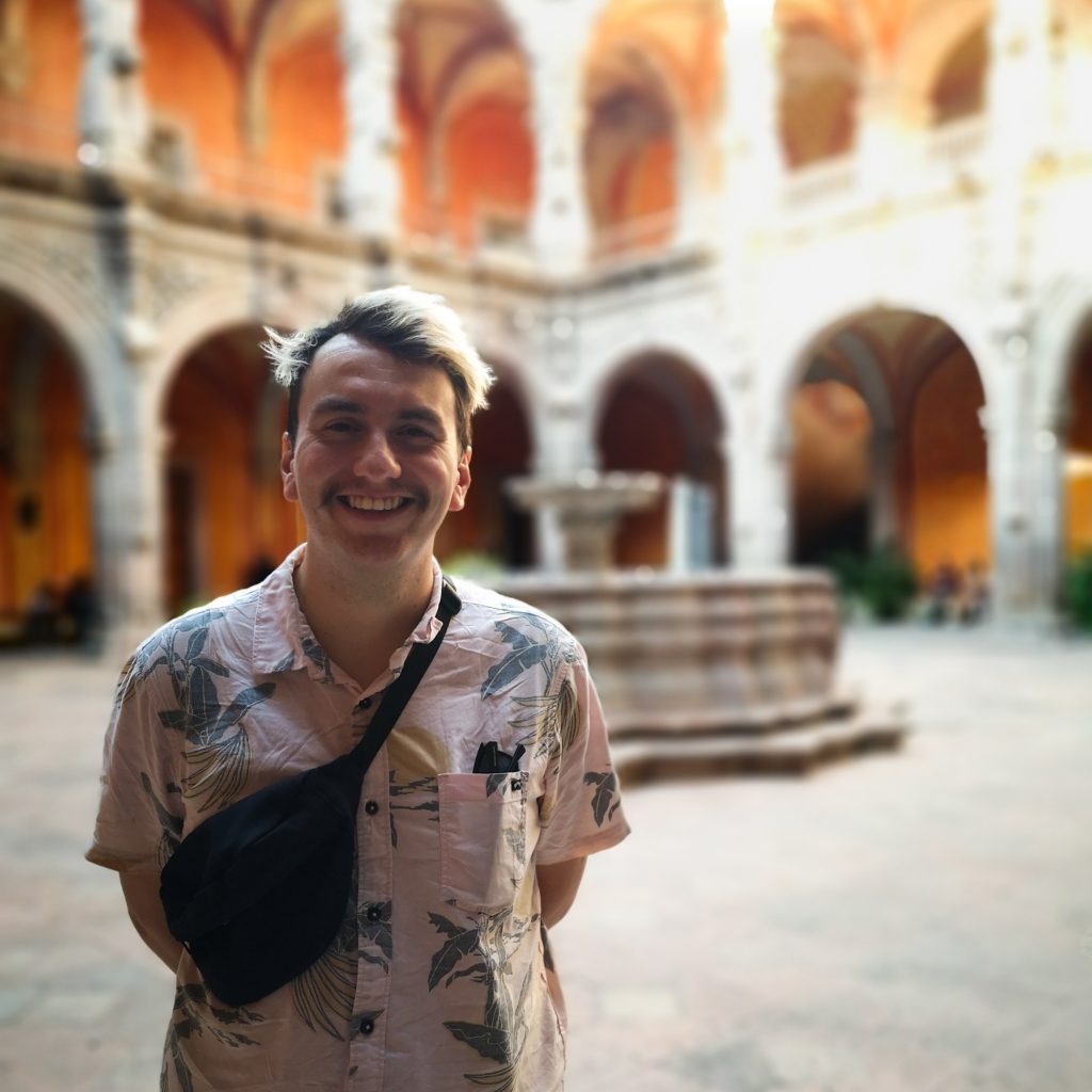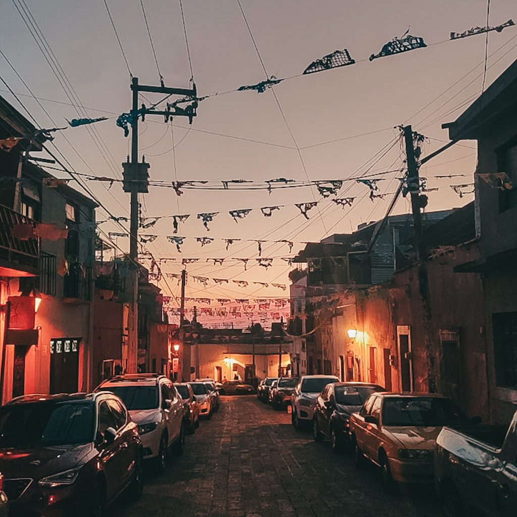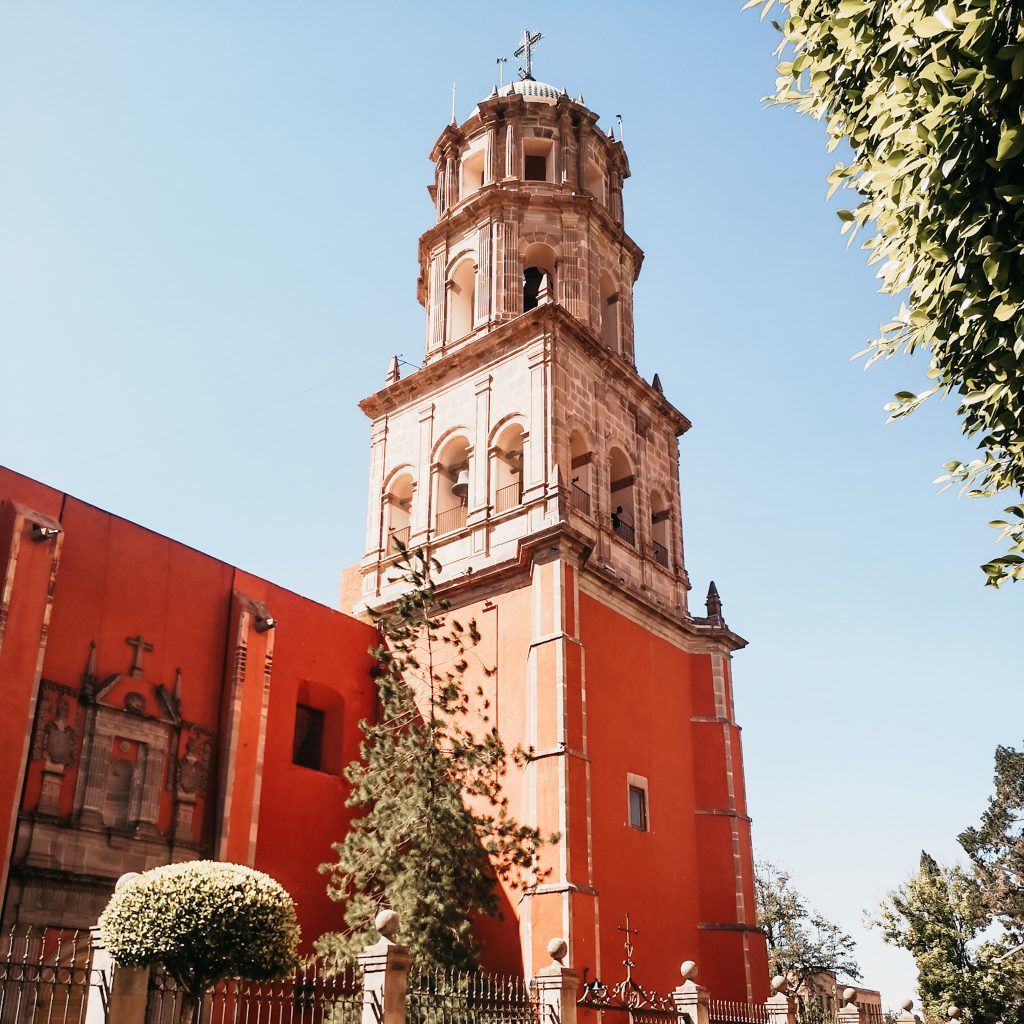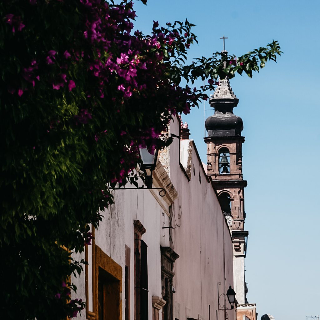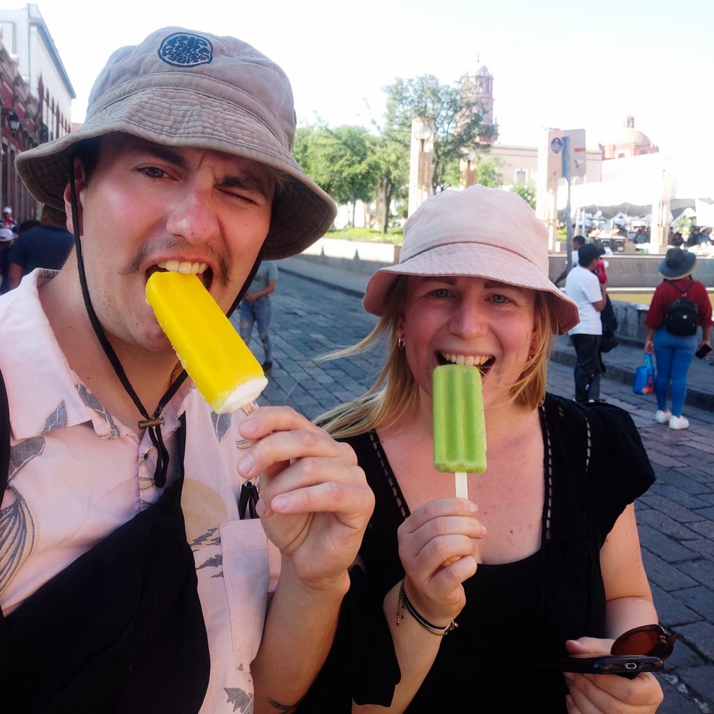 Danach geht es dann aber doch auf die erste Erkundungstour. Wir besorgen uns eine Simkarte und spazieren einfach drauf los. Wir sehen zwar eine Hand voll Touris (die zumindest für uns identifizierbar sind), befinden uns aber ansonsten in einer Wolke aus gut gelaunten, spanisch sprechenden Familien, gut aussehenden Frauen, älteren Damen und Herren und natürlich ein paar vierbeinigen Begleitern der Menschen (immerhin nicht mehr in Kinderwagen oder mit Windeln). Mittlerweile steht die Sonne tief, kurz vor Sonnenuntergang, und das goldene Licht taucht die Stadt in ein noch schöneres Licht. Wie wunderschön es hier ist. Es gibt mehrere Plätze, mal sind sie voll vom Verkäufer:innen, Clowns (darauf scheinen die Menschen hier total abzufahren) und kleinen Essens- und Getränkeständen. Mal sind sie aber auch fast leer und einzig und alleine auf den am Rand stehenden Banken nehmen Menschen Platz, die sich unterhalten oder einfach den Moment zu genießen scheinen. Auch wir nehmen auf einer der Bänke Platz und werden prompt vom zwei Männer angesprochen. Ja, offensichtlich sieht man uns an, dass wir keine gebürtigen Mexikaner:innen sind. Trotz Konstis extra für Mexiko herangezüchteten Schnörres. Vielleicht liegt es aber auch einfach an Caro, deren Haut- und Haarfarbe sich wahrscheinlich nicht einmal mit einer Färbung oder intensivsten und langwierigen Sonnenbädern anpassen ließe. Jedenfalls erzählen die beiden uns, dass Querétaro eine sehr gute Destination in Mexiko ist. Hier gibt es angeblich wesentlich weniger Tourist:innen, eine wunderschöne Altstadt (dem können wir schonmal kopfnickend zustimmen) und nette Menschen. Einer der Männer kommt aus Neuseeland und der andere aus Mexiko selbst, in Querétaro sind sie aktuell zum Arbeiten, wir können sie also als recht stabile Quelle für diese Infos einstufen. Ach cool, das freut uns. Das klingt nach genau dem richtigen Start für uns.