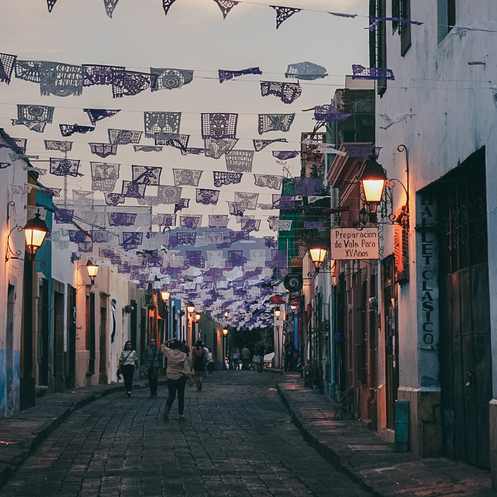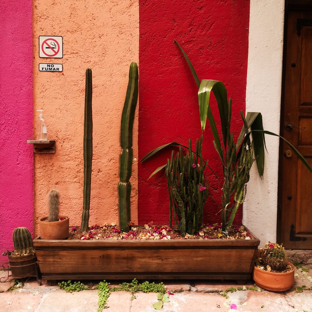 Wir sind direkt verliebt. Wie wunderschön ist bitte diese Altstadt? Bunte mit künstlerisch bemalten Schriftzügen verzierte Häuser, Kirchen, Brunnen und Innenhöfe wie aus dem Bilderbuch. Schon der Weg bis zur Unterkunft reicht aus, um uns in den Bann zu ziehen. Wir sind Feuer und Flamme, uns die Stadt anzuschauen, das erste mexikanische Essen zu verkosten und auf Erkundungstour zu gehen.