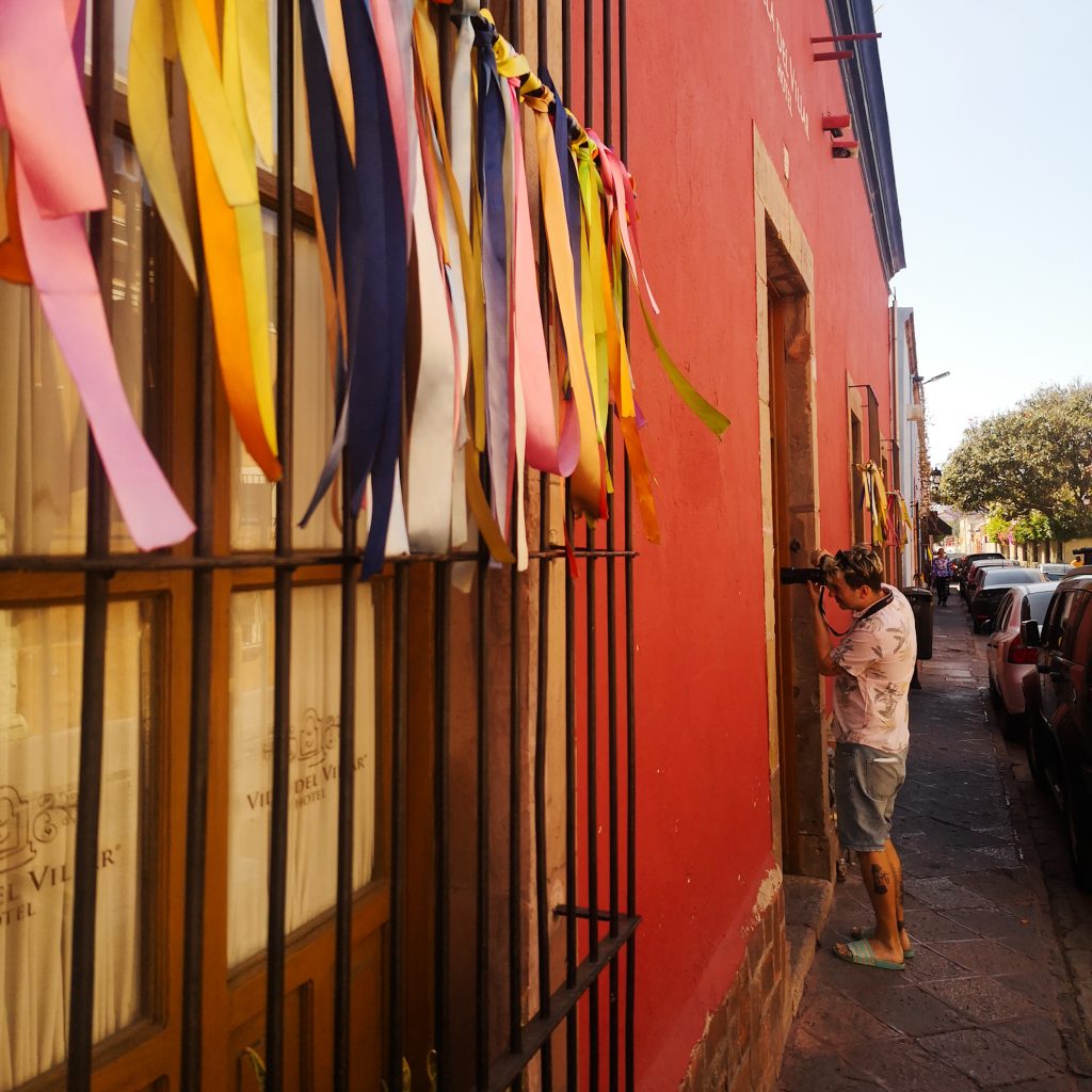 Wir lassen uns einfach durch die Straßen treiben, sind begeistert von den schönen Häusern, dem ein oder anderen Hinterhof und den schönen Kirchen. Schon jetzt fallen uns immer wieder weiß-lila geschmückte Häuser auf. Kleine Stoffbänder und kleine Papier-Pompoms sind an den Eingängen und Fenstergittern befestigt. Was es damit auf sich hat, werden wir aber erst später verstehen.
