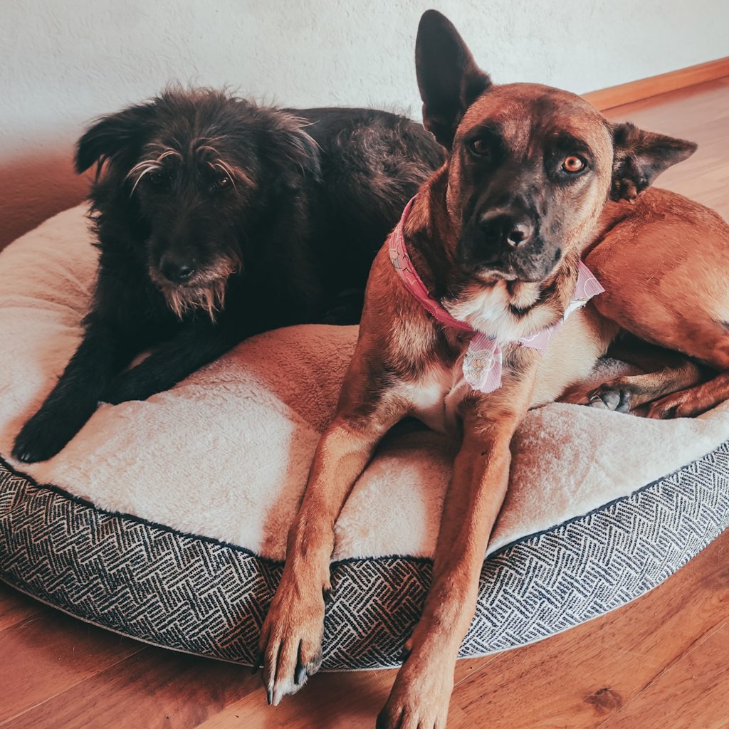 - Ansonsten ist Frida eine recht entspannte Zeitgenossin. Wenn Moxxie mal wieder lautstark den Garten und unsere vier Wände verteidigen möchte, ist sie unterstützend dabei, gibt aber selten den ersten Impuls. Während die anderen beiden Hunde sich gerne mal um unsere Aufmerksamkeit und Streicheleinheiten reißen, liegt sie entspannt daneben.