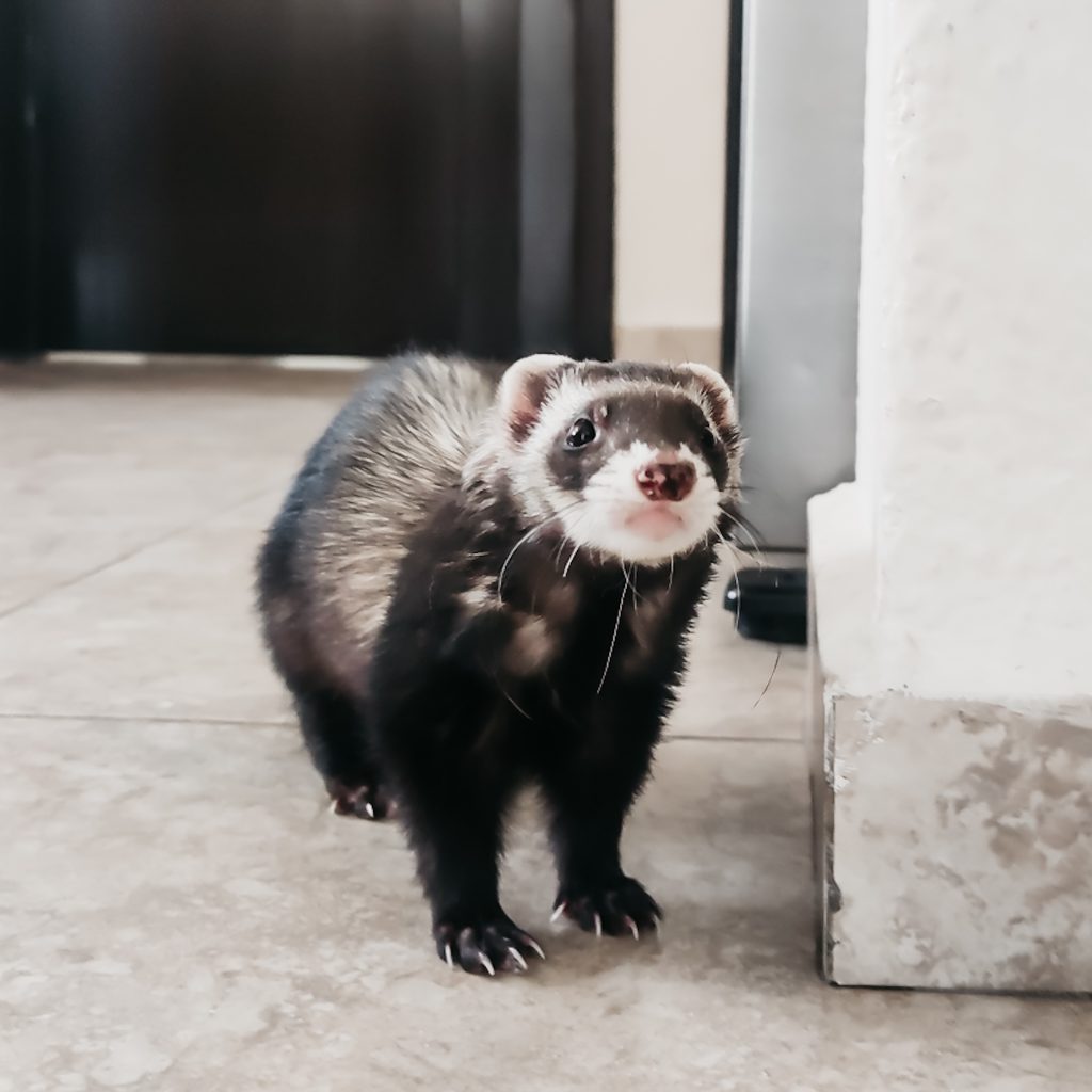 - Unser erstes Frettchen, auf das wir aufpassen und generell das erste Frettchen, auf das wir überhaupt aufpassen (und für Caro überhaupt in den Händen halten). Ganz weich und ganz wabbelig fühlt sich so ein Frettchen an. Wie ein zu lang gezogenes Nagetier ohne jegliche Körperspannung, sodass man aufpassen muss, dass er einem nicht auf den Händen rutscht.
