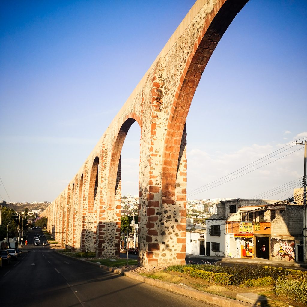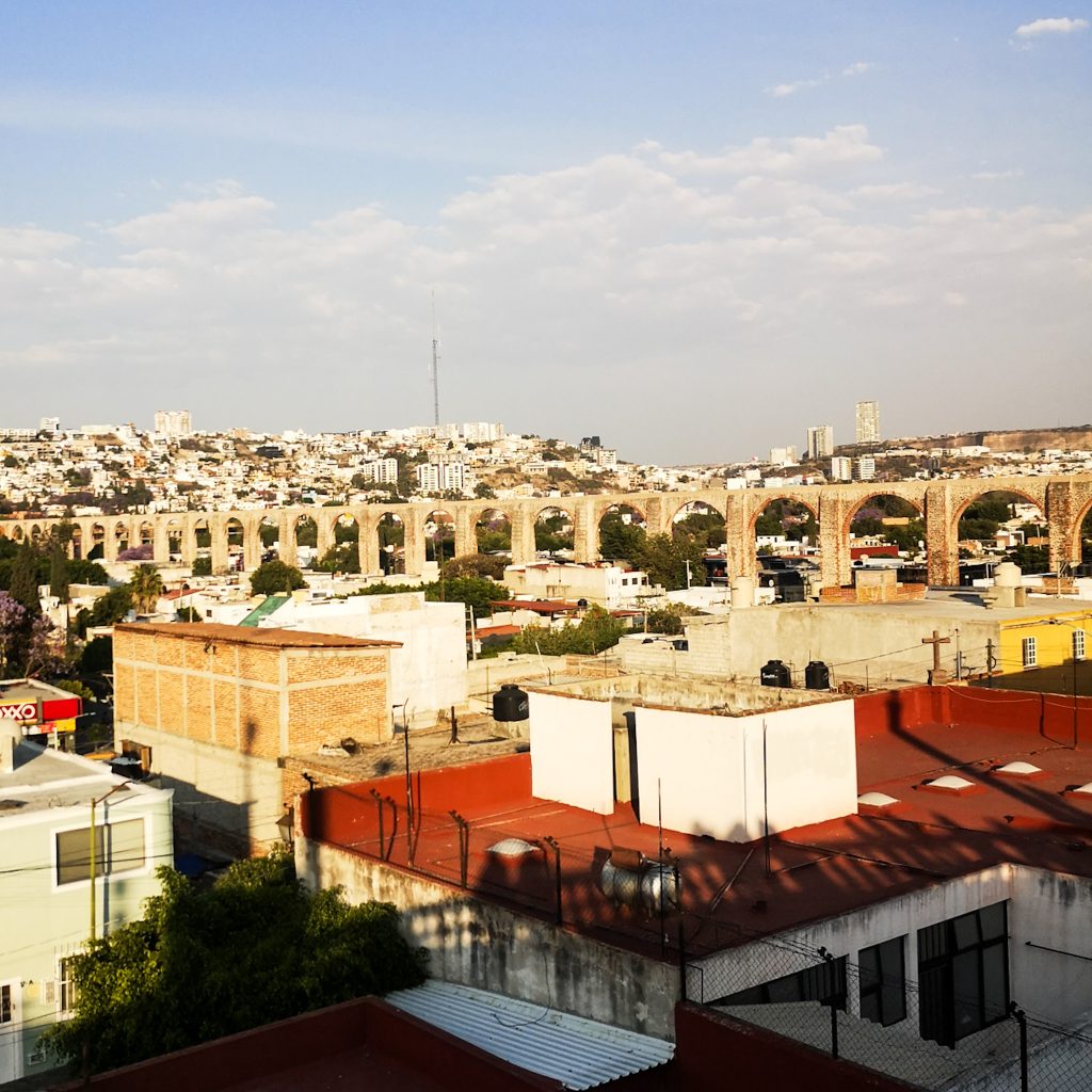 Mit dem Bus fahren wir ca. eine halbe Stunde zum Bus Terminal von Querétaro etwas außerhalb der Innenstadt. Unser Plan von dort – einfach mit dem nächsten Bus in die Stadt. Aber ganz so einfach ist es dann nicht. Die Damen am Schalter für die Fernbusse können natürlich kein Englisch. Es wird aber auch langsam Zeit, mal die ersten Spanischskills auszupacken! Wir fragen höchst professionell nach den öffentlichen Bussen. Sie versteht uns sofort. Soweit so gut. Nur wir leider die Antwort nicht. Zumindest nicht im Detail, aber zumindest ungefähr die Richtung. Genau diese steuern wir also an. Wir verlassen das Fernbus-Terminal und laufen entlang kleiner Geschäfte. Mitten zwischen den Locals, ein Touri ist hier weit und breit nicht zu sehen. Puh, es ist ganz schön heiß. Glücklicherweise haben wir uns am Flughafen direkt kurze Hosen angezogen, aber eingecremt haben wir uns natürlich nicht. Wir laufen und laufen und je weiter wir kommen, desto unsicherer sind wir uns, dass wir richtig sind. Aber irgendwann sehen wir doch Busse. Auf einem großen Parkplatz stehen ein paar Busse. Eine Linie Richtung Zentrum ist nicht ausgeschildert. Wir gehen zum erstbesten Busfahrer und packen ein zweites Mal unsere „Skills“ aus. Er versteht uns und erklärt, dass wir mit dem rot-weißen Bus fahren müssen. Ganz oben entdecken wir dann auch einen Ticketschalter und eine Frau, die hier zu arbeiten scheint. Sie erklärt uns, dass wir im Bus direkt zahlen können. 11 Pesos pro Person. Ok, das klingt doch gut. Also nichts wie rein in den Bus und dann beginnt auch schon die wilde Fahrt. Jetzt sind wir definitiv in Mexiko angekommen. Der Bus fährt mit überhöhter Geschwindigkeit durch die Straßen und in die Kurven, die Musik wird laut aufgedreht und die warme Luft von draußen wird durch die offenen Fenster etwas durch den Bus gepustet. Passend dazu schwitzen wir. Konsti verfolgt auf Google Maps unseren Standort und nach ungefähr einer halben Stunde hüpfen wir an der Haltestelle schnell aus dem Bus. Eine erste sehr positive Erfahrung mit dem Bus. Ein kleines bisschen stolz sind wir. Noch, denn unsere weiteren Versuche mit dem Bus von A nach B zu kommen, gestalten sich weitaus schwieriger. Ohne zu viel verraten zu wollen, aber vielleicht kosten sie uns auch einige Nerven und ganz vielleicht verstehen wir selbst am Ende unseres Aufenthalts immer noch nicht, wie das gesamte System funktioniert. Aber nun erstmal zurück zu den schönen Dingen: