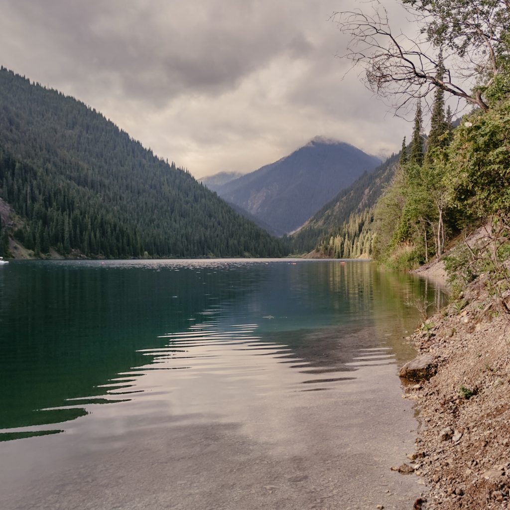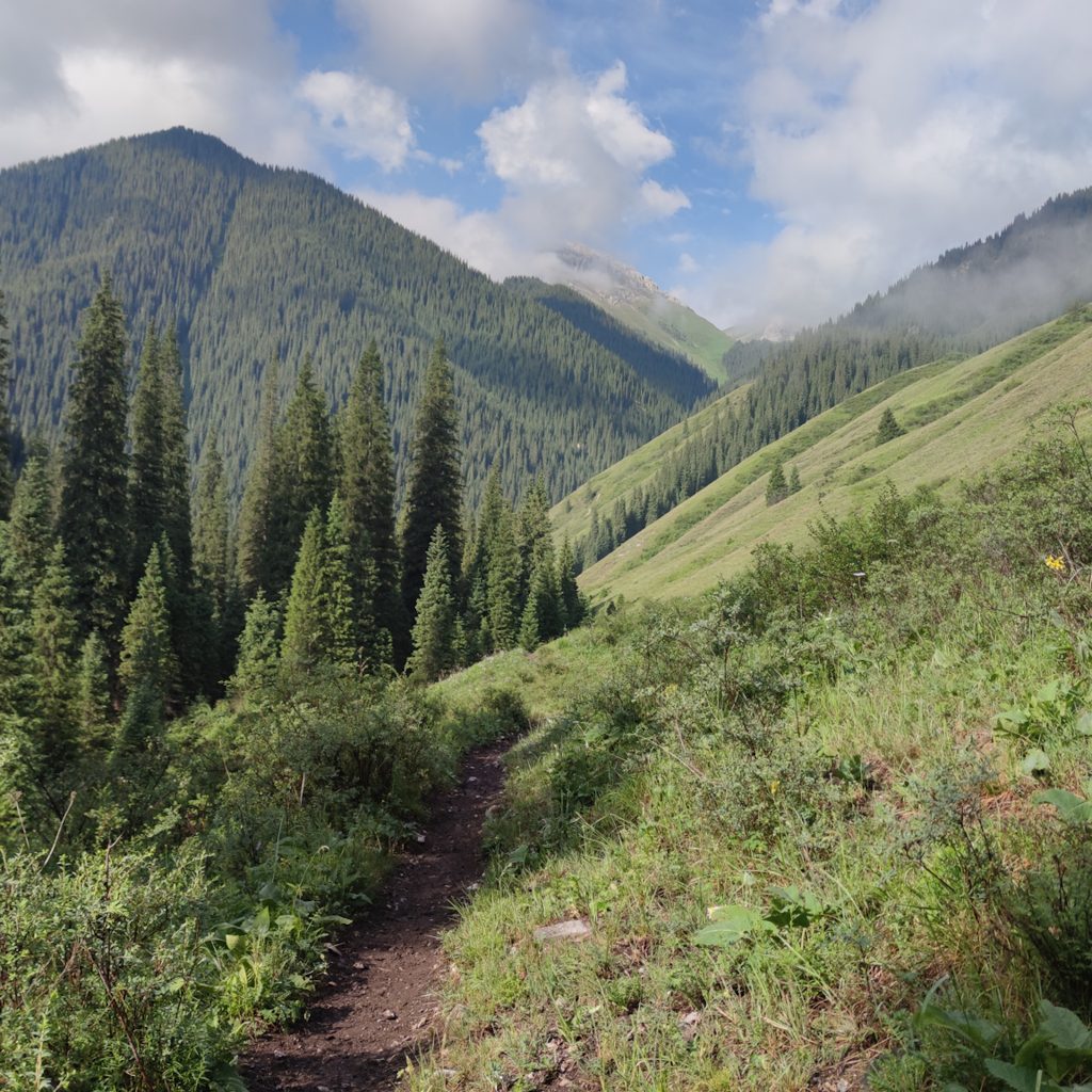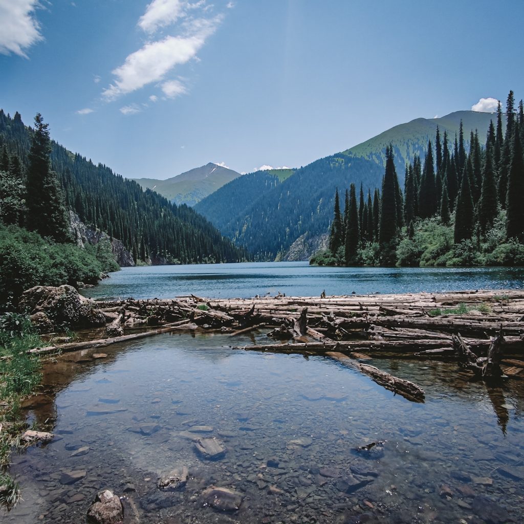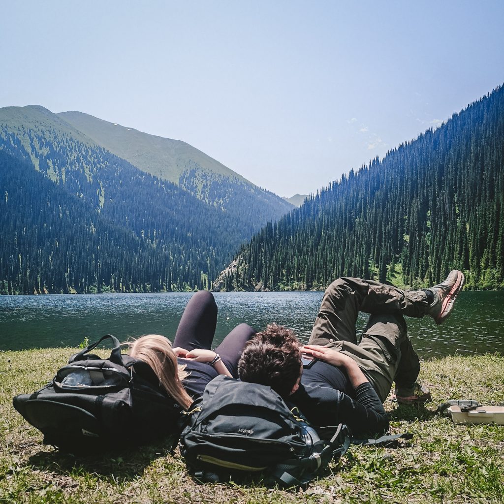 Der Wecker klingelt heute früh. Wir haben uns heute die Wanderung vom Kolsai Lake 1 zur Numero 2 vorgenommen. Es soll anstrengend werden und da Caro immer noch nicht wieder ganz fit ist, wollen wir zumindest früh starten. Der erste See liegt ziemlich nah beim Parkplatz von gestern. Als wir dort ankommen, sind nur ein paar ältere, russische Männer dort, die lautstark Technomusik hören und Fotos von sich machen. Wir laufen schnell los, müssen aber feststellen, dass ihre Geräuschkulisse uns noch etwas begleiten wird.