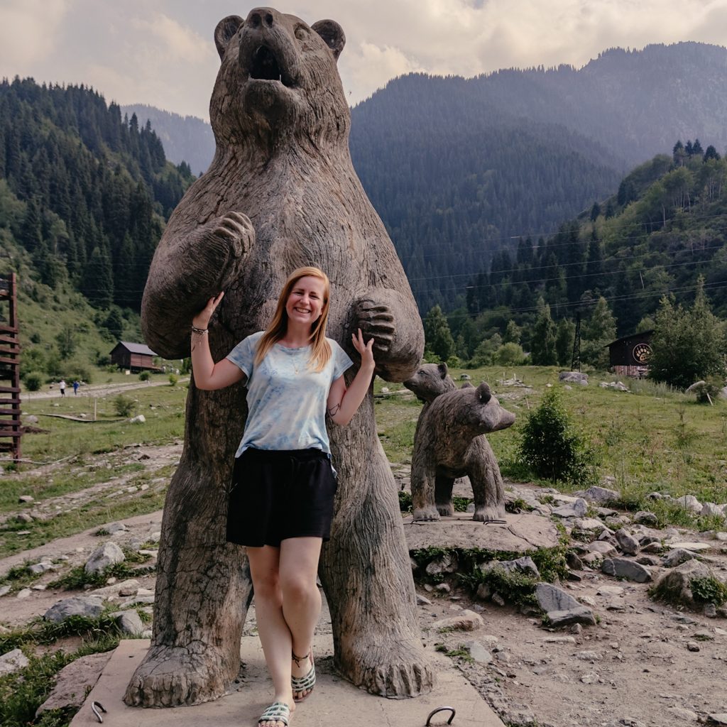 Wir verlassen den Nationalpark und tanken bei einer wenig netten Dame. Aber wie geht es jetzt weiter? Wir überlegen nach Qapschaghai, einem „Erholungsort“ am gleichnamigen See zu fahren. Ein bisschen Planschen wäre ja nett, aber die Rezensionen sind leider weniger einladend. Der „Strand“ soll sehr vermüllt sein und die Unterkünfte sehen auch semi gut aus. Dann vielleicht doch zum Big Almaty Lake, der etwas oberhalb von Almaty liegt? Wenn wir jetzt losfahren, könnten wir noch vor dem angekündigten Regen dort sein. Top, Entscheidung getroffen. Wir fahren ca. 2,5 Stunden, einmal durch Almaty durch und ab in die Berge. Aber dann stehen wir plötzlich vor einer Straßensperrung. Es gab einen Erdrutsch und man kommt nur mit einem 4×4 Geländewagen weiter oder man läuft. Die Fahrt mit dem Geländewagen ist total überteuert und da unsere Beine noch schwer von gestern sind, entscheiden wir uns gegen die 10 km bergauf. Wahrscheinlich hätte es oben sowieso geregnet und wäre sehr bewölkt gewesen. Daher der neue Plan: Nach kurzem Zwischenstopp am zweiten Bärenwasserfall (scheint hier ein Ding zu sein)…