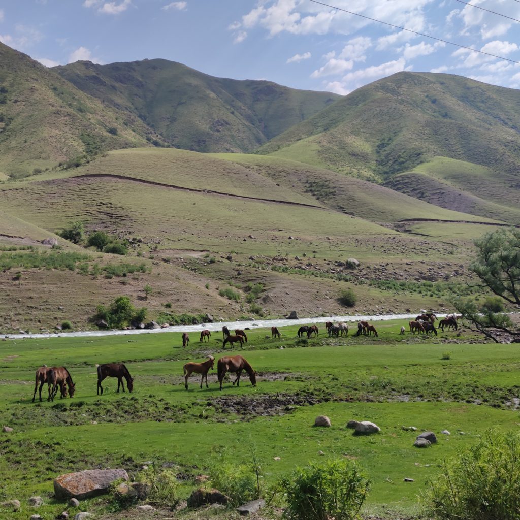 Gut geschwitzt, machen wir uns auf den Weg zum nächsten Stopp: Kolsai Seen. Da wir uns nach einer Dusche sehnen, wollen wir uns zunächst eine Unterkunft im letzten Dorf vor dem Nationalpark, Saty, suchen.