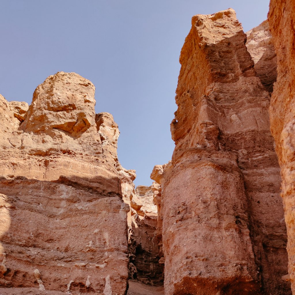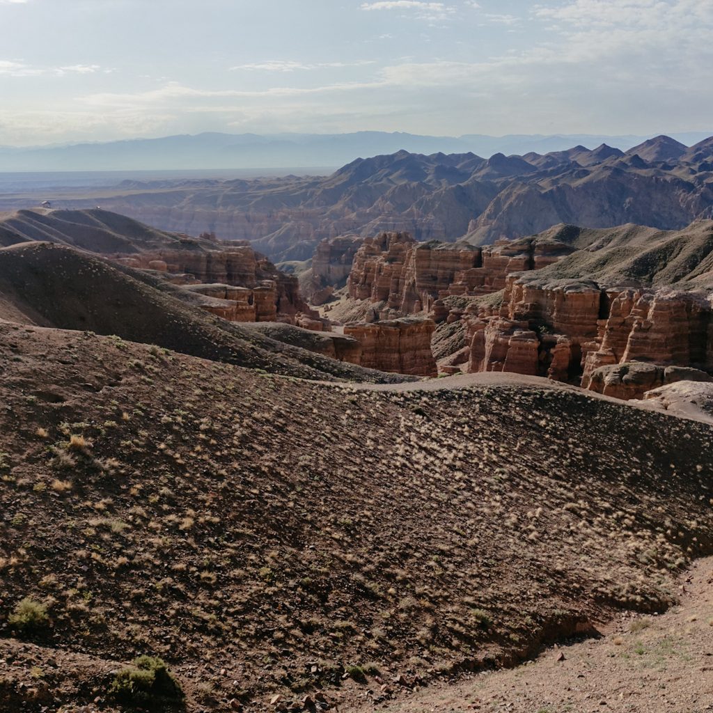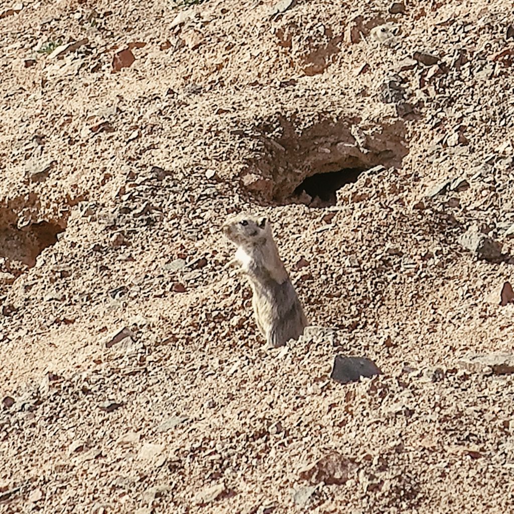 Wir machen uns kurz fertig und starten zeitnah in den Canyon. Bevor hier gleich die Touri-Massen einlaufen, starten wir mit der ersten Route „auf“ dem Canyon, danach gibt es eine zweite Route, die „durch“ das Tal des Canyons bis zum Fluss führt. Jeweils mit gleichem Hin- und Rückweg. Der Vergleich mit dem großen Bruder aus den USA liegt rein optisch gar nicht mal so fern. Mit nur 50 km vom Anfang bis zum Ende ist er eben nur etwas kleiner. Der Charyn Canyon folgt dem Hauptlauf des Charyn River. Die Schlucht erreicht eine Tiefe von 370 Metern. Besonders im Sonnenlicht leuchtet das rote Sedimentgestein beeindruckend schön. Direkt beim ersten Fotostopp werden wir genaustens beobachtet. Rechts und links tauchen plötzlich viele kleine Wühlmäuse auf, die neugierig aus ihren Löchern schauen und dabei kaum Scheu sind. Der Ausblick ist traumhaft schön.
