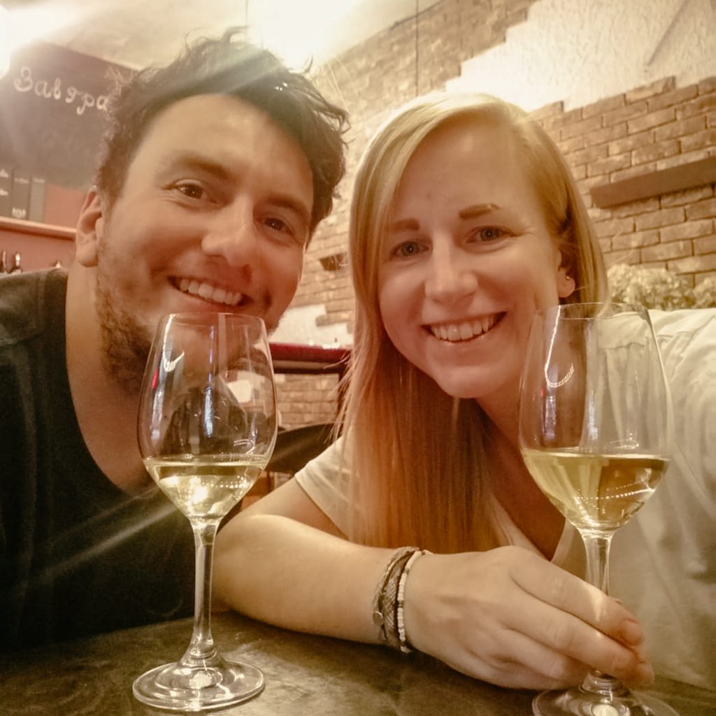 Zurück im Hostel kredenzen wir uns einen köstlichen Salat mit etwas Brot und gönnen uns danach ein Glas Wein. Wir können ja schließlich nicht im Winehub Hostel geschlafen haben, ohne hier ein Glas Wein zu trinken. Als wir dann noch ein Foto davon auf Instagram posten und das Winehub verlinken, bekommen wir direkt noch ein Glas spendiert. Ist das der Beginn unserer Influencer-Karriere? Wenn so unsere Kooperationen laufen, sagen wir dazu nicht nein 😅 Wir haben übrigens mit unseren stolzen 135 Followern eine echte Kooperationsanfrage. Ein Hersteller von Harem Pants hat uns angeschrieben, ob wir nicht ein paar der Hosen bewerben möchten. Geht so.