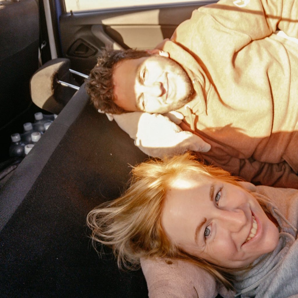 Heute versucht Caro ihr „Schlaf-Glück“ auf der Rückbank und Konsti erbarmt sich, den Platz auf dem Fahrersitz einzunehmen. Buenas noches.