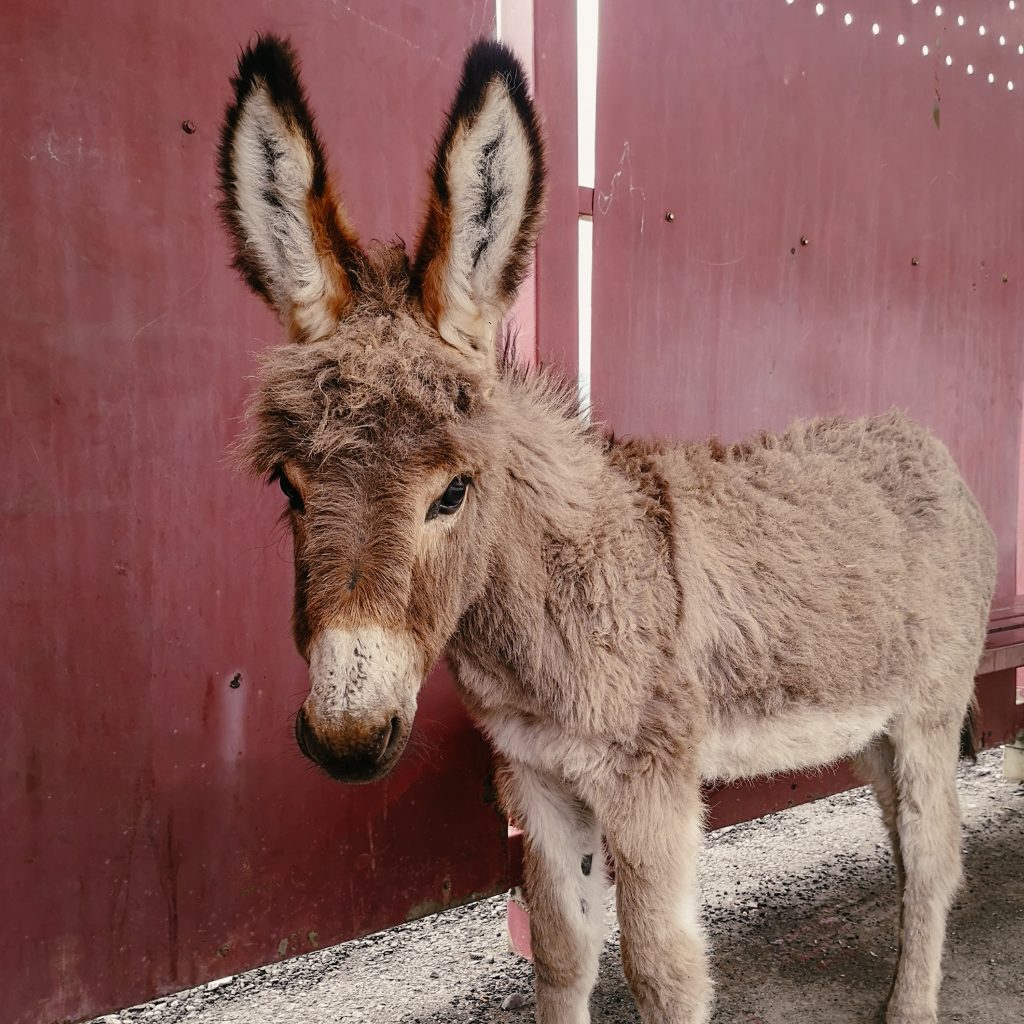 Tja, als wir ankommen (zugegebenermaßen zur Mittagszeit), ist niemand da, der Englisch kann. Ein Herr gibt uns zu verstehen, dass ab 14 Uhr wieder jemand da wäre. Gut, dann holen wir uns erstmal etwas zu trinken und vertreiben uns die Zeit mit der Google Suche nach einer weiteren Unterkunft. Wir fahren mit dem Auto zu einem weiteren Homestay, welches zumindest auf den Fotos eine Dusche hat. Hier ist aber niemand anzutreffen. Der Schlüssel steckt zwar, aber es ist niemand weit und breit zu sehen. Wir erfreuen uns dafür ein weiteres Mal an einer Eselmama mit ihrem Baby, die sich mitten im Dorf an der Straße (bevorzugt an der Bushaltestelle – wer kennts nicht aus der Teeniezeit?) aufhalten.
