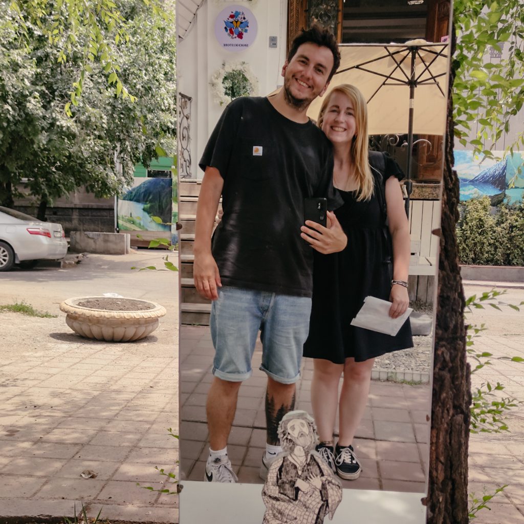 Den Rest des Tages verbringen wir also bei in einem Café mit dem Schreiben der Postkarten und holen etwas Instagram-Content nach. Caro erstellt ihr erstes Reel, was eine Ewigkeit in Anspruch nimmt. Wir wissen ja, „Digital Native“ ist sie nicht. Für diejenigen, die eine Postkarte erhalten: Wundert euch nicht, ihr erhaltet eine Postkarte aus Almaty, die aus Bischkek (Kirgisistan) versendet wurde. Schlichtweg haben wir es einfach nicht mehr zur Post geschafft, aber eigentlich ganz cool so, oder?