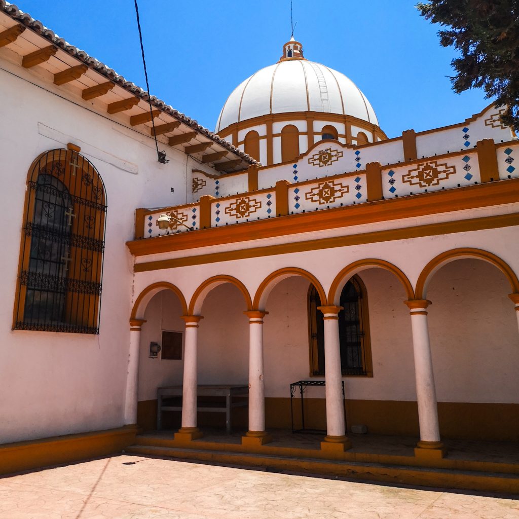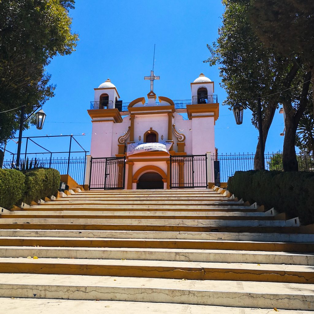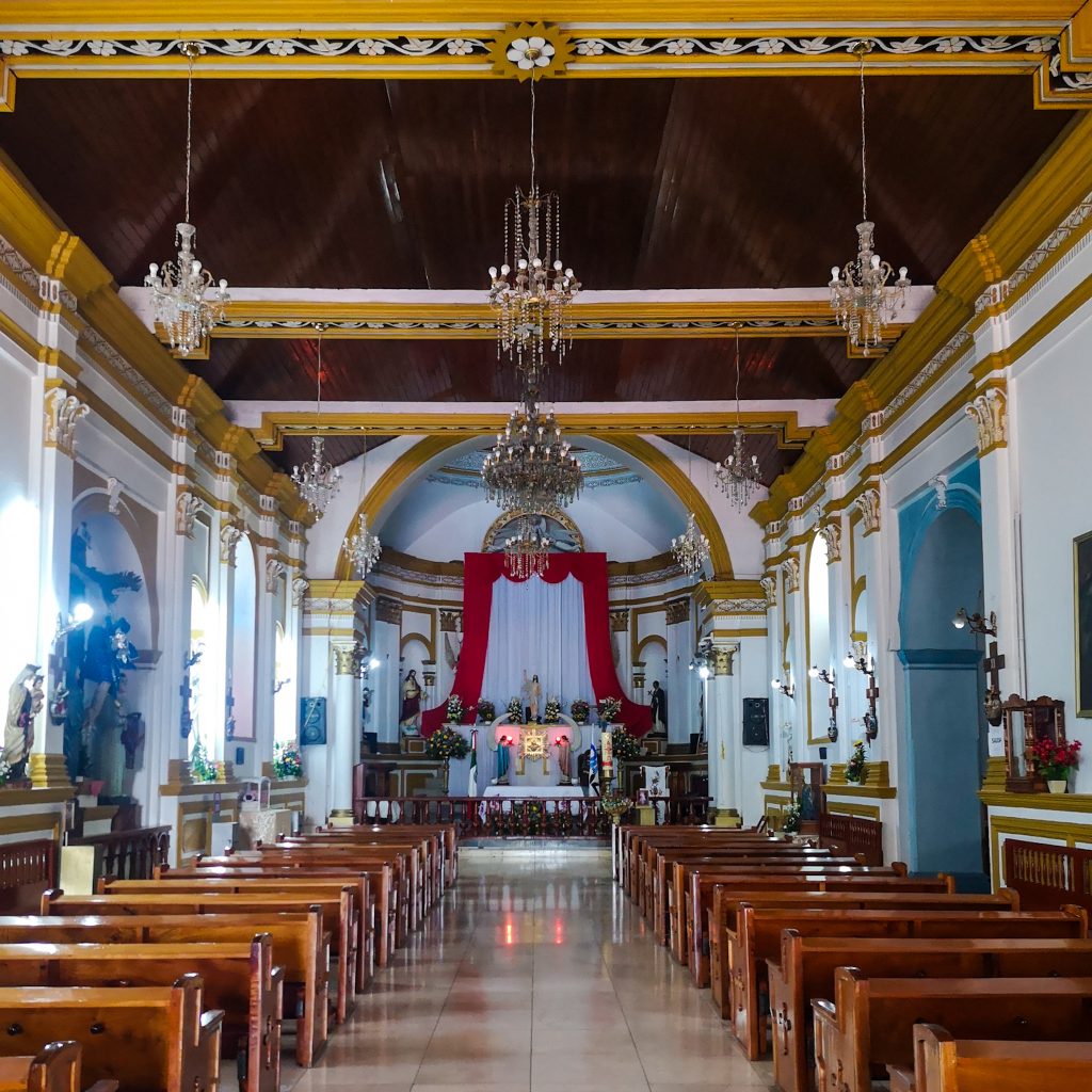 Als wir ankommen, steuern wir zunächst die Kirche an. Sophia hat bei der Freewalking Tour in San Cristobal gefragt, ob es auch Kirchen/Tempel/Glaubenshäuser gibt, in denen keine Tieropfer erbracht werden. Daraufhin wurde ihr der Besuch hier empfohlen. Und tatsächlich, hier sieht es ganz anders aus als gestern in Chamula. Es sind nur ein paar Menschen in der Kirche, die tatsächlich auch zum größten Teil noch wie eine Kirche aussieht. Was uns direkt auffällt: Die Blumen. Es gibt mehrere Altäre und Figuren. Vor ihnen hängen große Blumenteppiche. Alle mit frischen Blumen aufwendig zusammengesteckt. Und überhaupt, überall hier sind frische Blumen, richtig schön. Es ist auch wesentlich heller, es gibt Sitzbänke und keine Kiefernadeln auf dem Boden. Die Figuren, die überall an den Seiten stehen, haben meist einen kleinen Spiegel um den Hals hängen. Wir haben zuvor gelesen, dass der Spiegel die Seele des Menschen widerspiegelt und dass, sobald man in den Spiegel schaut, ein Teil der Seele in diesen übergeht. Auch daher ist es hier natürlich auch ausdrücklich verboten, Fotos zu machen. Insgesamt fühlen wir uns hier etwas wohler, wobei der gestrige Besuch noch etwas spannender war.