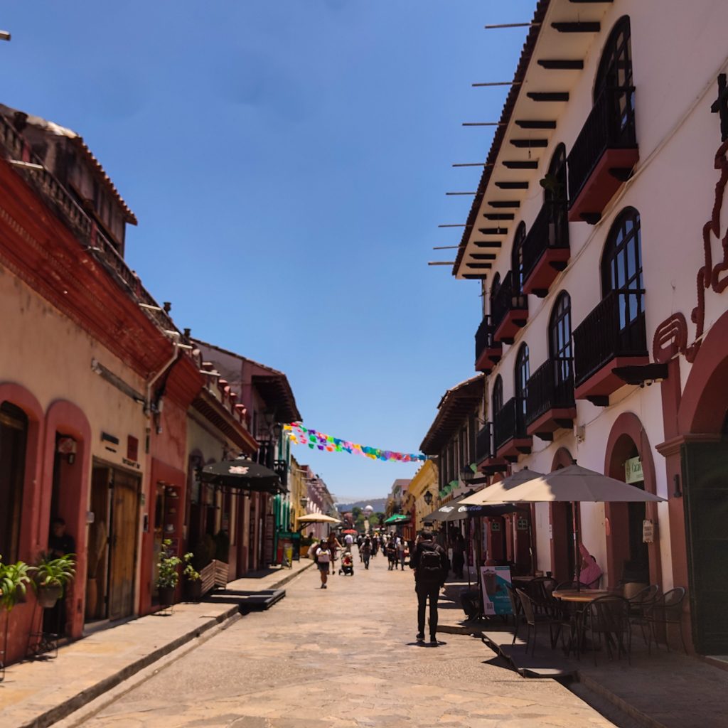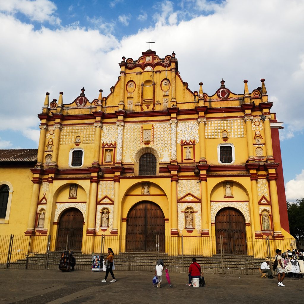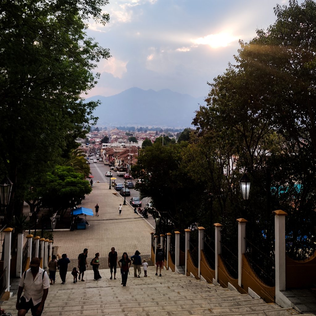 Um die Zeit bis zum Checkin etwas herum zu bekommen, machen wir uns auf den Weg in die Stadt. Wir haben ein paar Dinge abgespeichert. Kirchen, Plätze, Märkte. Was unseren müden Körpern direkt auffällt: Die Stadt ist ganz schön bergig. Sie liegt im zentralen Hochland von Chiapas auf ca. 2.100 m Höhe. Im umliegenden Bergland sind die Maya Zuhause. In den vom Maya-Stamm der Tzotzil bewohnten Ortschaften im Norden und Nordwesten San Cristóbals wie Chamula und Zinacantán werden zum Teil noch indigene Traditionen und Lebensweisen bewahrt und gepflegt. Mehr zu den beiden Orten später. Die Stadt wurde 1528 als Villa Real de Chiapa gegründet. Nach einigen Namensänderungen hieß die Stadt seit 1829 San Cristóbal; die Ergänzung de las Casas wurde 1848 angefügt, um Bartolomé de Las Casas zu gedenken, einem spanischen Dominikaner, der als Bischof von Chiapas in der Kolonialzeit für die Rechte der indigenen Bevölkerung eintrat. Die Stadt ist weltberühmt für ihre Kolonialarchitektur mit der Klosterkirche Santo Domingo.