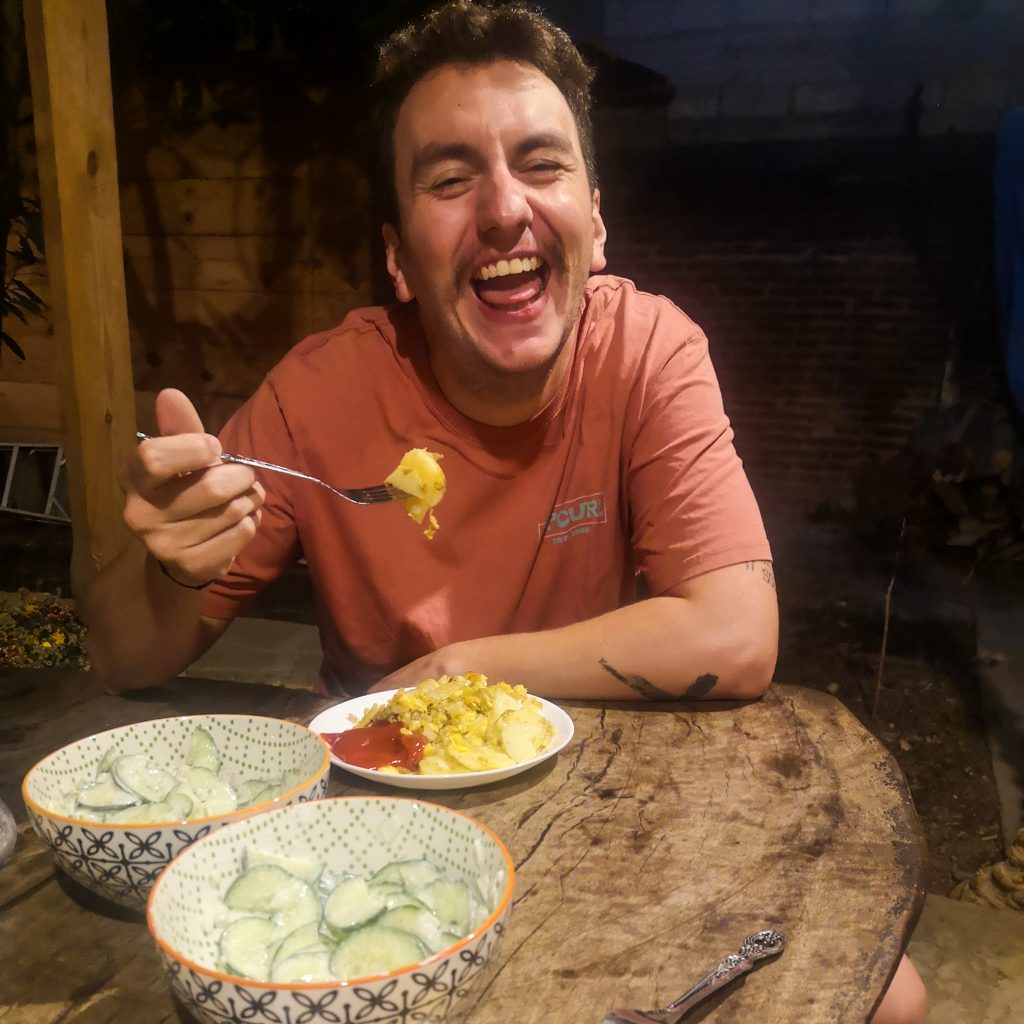 Naja, es kommt, wie es kommen musste. Kaum können wir einchecken, liegen wir auch schon in unserem Bett und aus einem kurzen Mittagsschlaf von MAXIMAL einer Stunde, werden fast drei. Das Bett in dem kleinen, süßen Zimmer, das einem alten Bauernhof mit hohen Decken und Holzbalken gleicht, ist zu einladend. Wir lassen den restlichen Abend entspannt ausklingeln und bereiten uns aus unseren Kartoffelresten ein feinstes Bauernfrühstück zu. Köstlich. Die Küche vom Hostel ist nämlich entgegen unserer Erwartungen nicht überfüllt und wir können abends in Ruhe kochen. Wenn man Bauernfrühstück zur Kategorie „Kochen“ zählen darf.