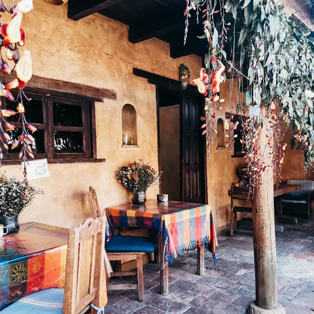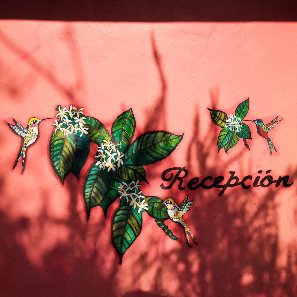 Apropos Frühstück. Wir trauen unseren „Backpacker-Augen“ nicht. Es gibt eine riesige Schüssel mit frischem Obst (Wassermelone, Banane und sogar Mango), zweierlei Cornflakes mit Milch, gutes Brot zum Toasten, Butter und Marmelade. Aber das beste: Zwei Frauen, man könnte auch sagen „Muttis“ kümmern sich herzallerliebst um die Eierspeisen-Wünsche der Gäste. Vor allem die eine der beiden Frauen, stark geschminkt und etwas fülliger läuft herum und fragt, ob noch jemand einen Wunsch hat. Ihre liebevolle Art zu sprechen, ihr Lächeln und das köstliche Rührei, lässt hier richtiges Zuhause-Feeling aufkommen. Im ersten Moment sind wir zwar noch überfordert, aber einen Kaffee später, sitzen wir auch mit einem Frühstück im Innenhof. Hier ist es einfach wunderschön und ab dem ersten Moment haben wir das Gefühl, dass hier die Uhren etwas entspannter ticken. Lustigerweise hören wir schon jetzt ein paar deutsche Gespräche, aber auch ein Holländer und Franzosen können wir identifizieren. Und wen wir auch identifizieren können, sind die Kolibris, die sich hier vor allem zur Morgenzeit blicken lassen und flink an den Blüten der ganzen Pflanzen hier entlang fliegen.