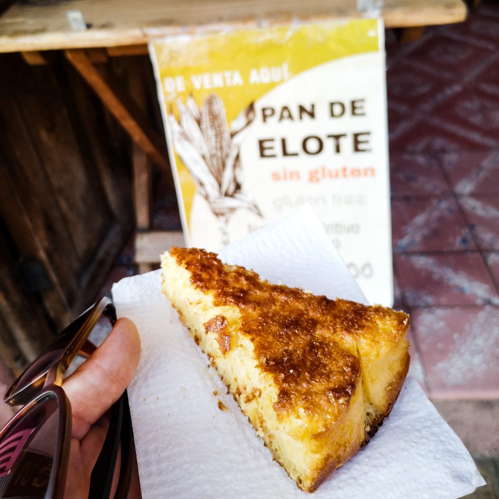 Am Nachmittag lassen wir uns noch etwas durch die Stadt treiben, schauen in ein paar Geschäfte und tatsächlich kaufen wir auch ausnahmsweise mal etwas. In einem kleinen Laden ist ein Ehepaar gerade damit beschäftigt, Seife selbst zu machen und die Masse in Form zu bringen. Die sämtlichen selbstgemachten Seifen und Shampoos liegen in einem Regal. Selbst die Beschriftung ist auf kleine Stofffetzen gestickt. Caro beschließt, dass wir ja ein klitzekleines Probiershampoo mitnehmen können. Die Frau ist so nett und gibt uns noch ein kleines Aufbewahrungssäcken mit, in dem sich das Shampoo auch aufschäumen lässt. Es riecht zugegebenermaßen etwas öko, aber gar nicht schlecht. Wir snacken noch schnell ein Pan de Elote, eine Art Maiskuchen und schlendern dann wieder zurück.
