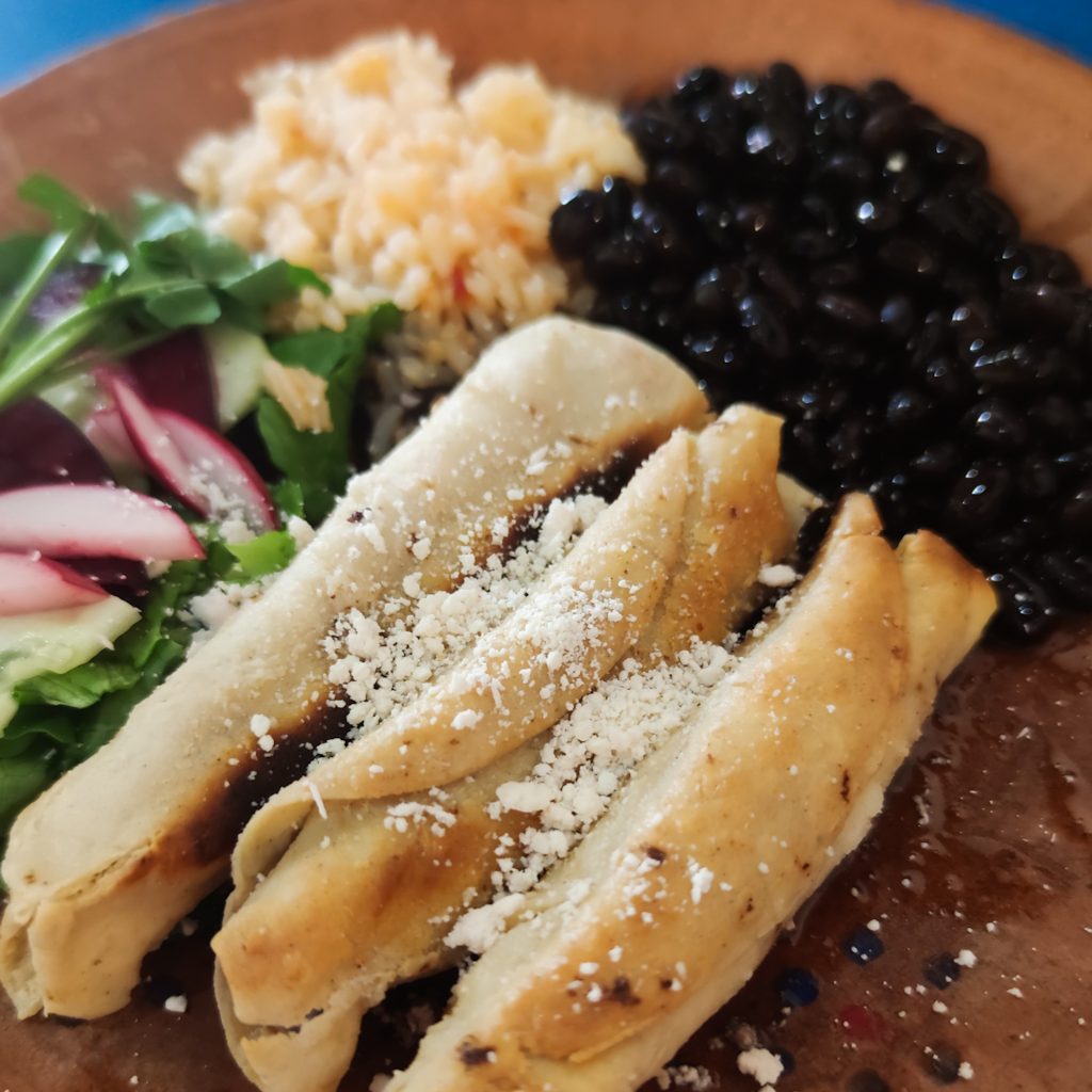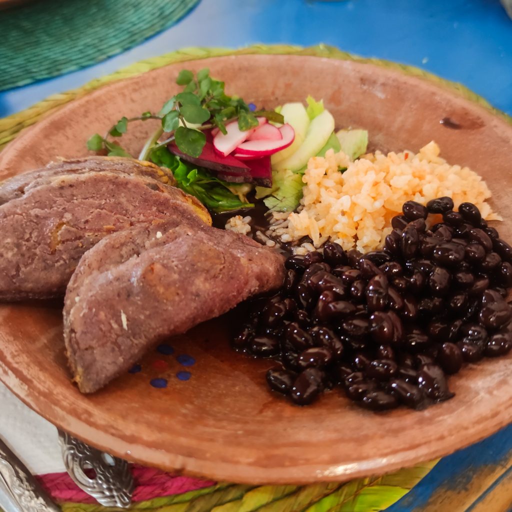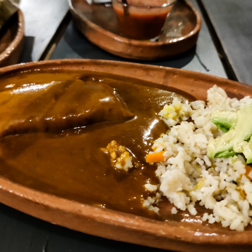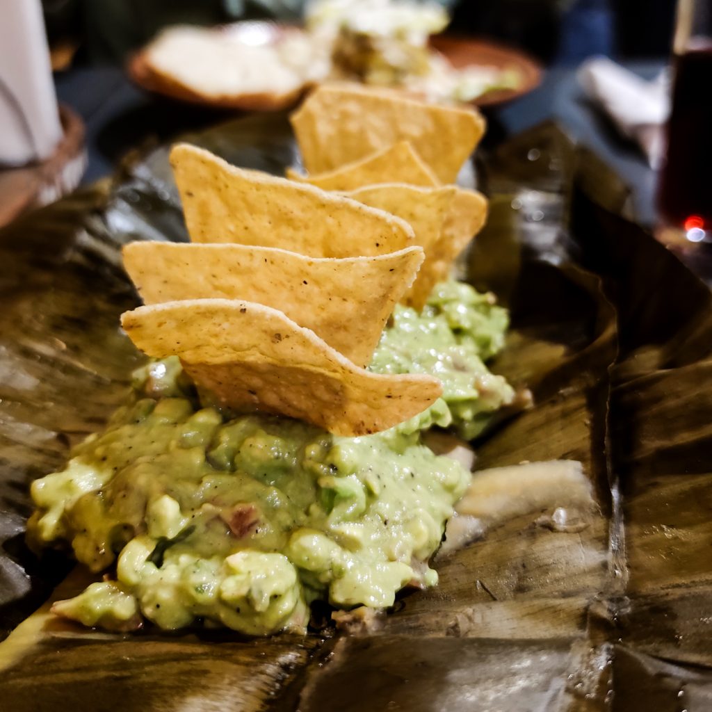 Da wir heute nicht einkaufen waren, entscheiden wir uns, einfach schnell in der Stadt etwas Essen zu gehen. Solange wir noch in Mexiko sind, wollen wir unbedingt Tamales probieren. Natürlich finden wir hier in San Cristobal eine vegetarische Variante des Gerichts. Es handelt sich bei Tamales um Maisteig, der mit Fleisch, Käse oder anderen Zutaten gefüllt und dann in einem Bananenblatt gedämpft wird. So haben es angeblich schon die Mayas gemacht. Unsere beiden Versionen sind etwas modernisiert worden. Statt mit Fleisch sind sie mit Käse und Gemüse gefüllt. Die eine Portion wird mit einer Mole und Reis serviert, bei der anderen Variante entscheiden wir uns für Guacamole. Apropos Guacamole: Ohne es jetzt weiter recherchiert zu haben, hatten wir an dem Tag eine kleine Erleuchtung. Luca hat Konsti gerade etwas von Guacamole erzählt und das Wort dabei unabsichtlich Guaca-Mole betont. Und da fiel es den beiden gleichzeitig wie Schuppen vor den Augen. Aguacate ist das spanische Wort für Avocado, Mole meint meistens eine Sauce oder Dip. Und ta da: Aus Aguacate und Mole wird Guacamole.