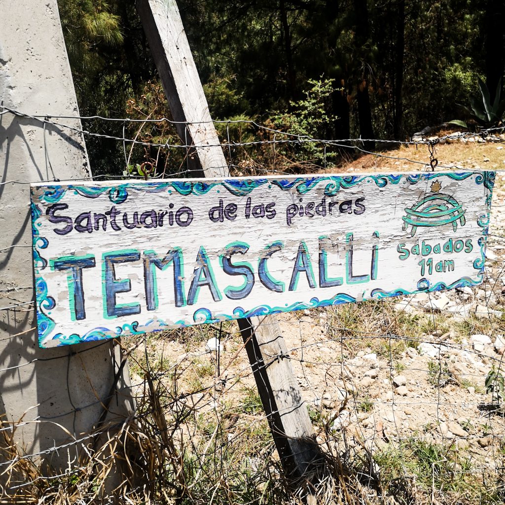Das Temazcal findet etwas außerhalb der Stadt statt, wir gehen zu Fuß ca. 40 Minuten und landen.. ja.. eigentlich im Nirgendwo. An einer Straße mit Zaun entdecken wir ein kleines handgemaltes Schild „Temazcalli“ (Samstags, 11 Uhr), dahinter gibt’s ein kleines Schlupfloch im Zaun.