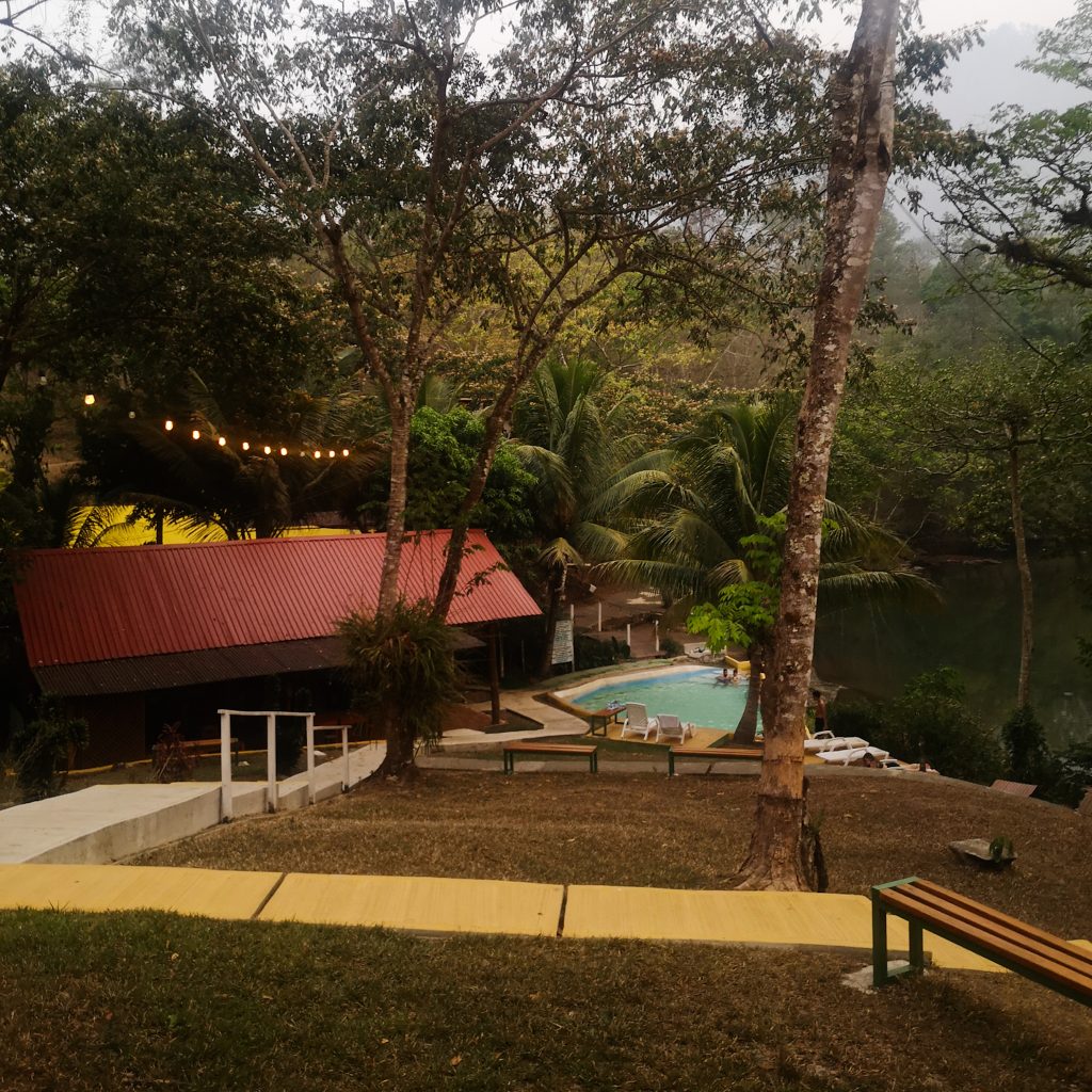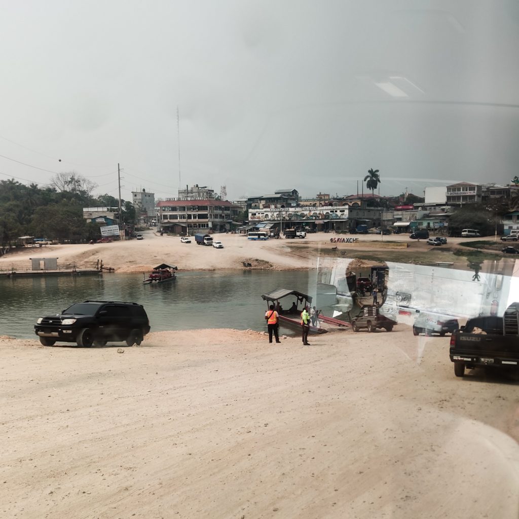 Danach zieht sich die restliche Strecke noch ewig durch kurvige Bergstraßen. Zwischendurch muss der Fahrer sogar die Klimaanlage ausstellen. Kurz vor Einbruch der Dunkelheit kommen wir in Lanquin an. Wir haben uns allerdings für eine Unterkunft direkt am Nationalpark entschieden, das bedeutet im Umkehrschluss: Wir sind noch nicht da. Die verschiedenen Unterkünfte holen ihre Gäste ab. Unser Fahrer erklärt uns allerdings, dass wir noch auf eine weitere Person warten müssen. Wir werden in ein nahegelegenes Hostel, das zu unserem dazugehört, gefahren, wo wir auf die Weiterfahrt warten sollen. Hier gibt es WLAN, Toiletten und ein paar gemütliche Plätze zum Warten, direkt oberhalb des Flusses. Eigentlich wollen wir aber nur ankommen. Wir warten, warten und warten.