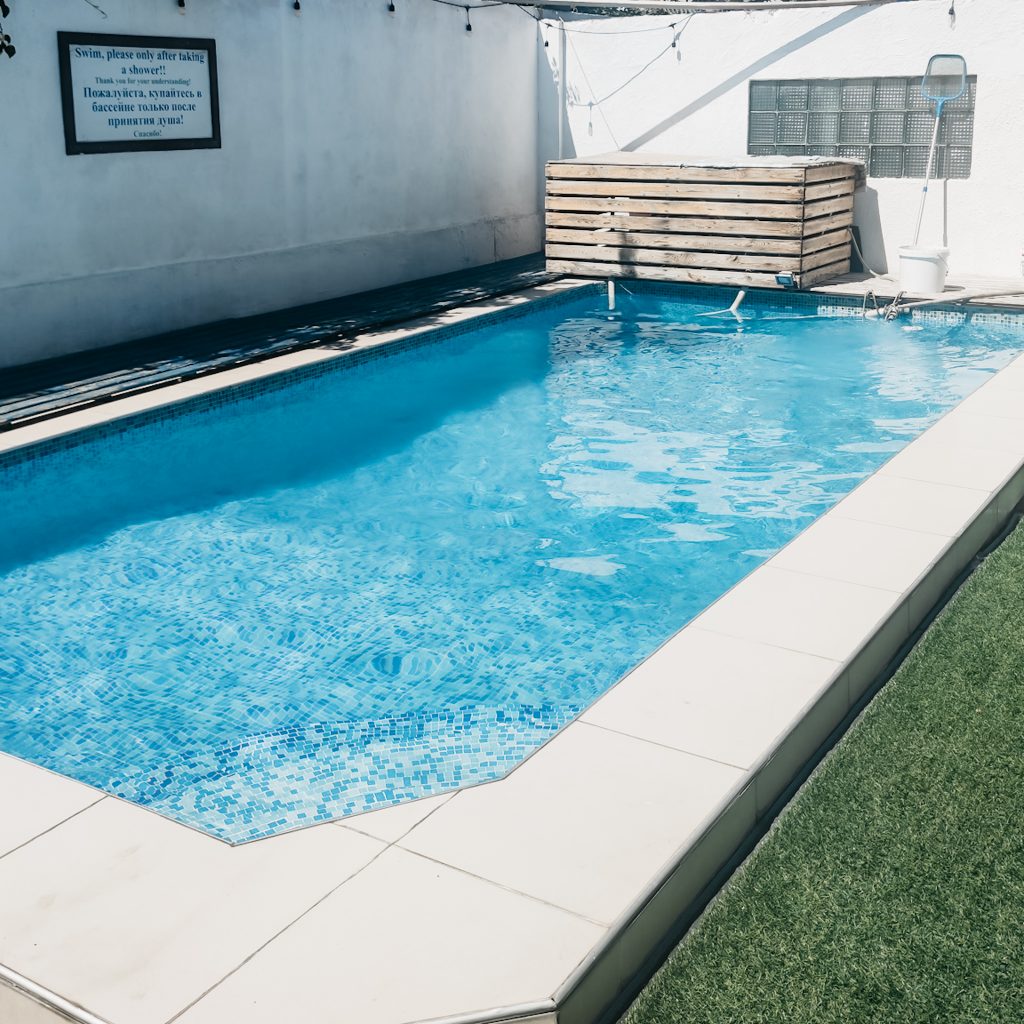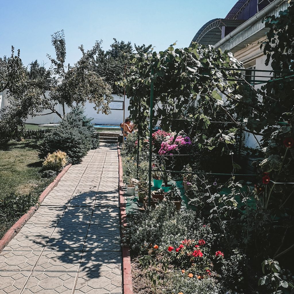 Das Hostel liegt außerhalb der Stadt. Hier sieht es mehr nach einem Wohngebiet. Gut, dass die Schweizer uns vorgewarnt haben, dass das Hostel von außen kein Schild hat. Wir klingeln bei der passenden Hausnummer und werden herzlich von Baitur und Az, der Tochter der Hostelbesitzer, empfangen. Sie zeigen uns unseren Schlafplatz. Einmal durch den Garten befindet sich eine Jurte mit 4 Doppelstockbetten. Aber das beste befindet sich im Garten – der hoch angepriesene Pool! Und tatsächlich wird dieser auch genutzt und sieht sehr sauber aus.