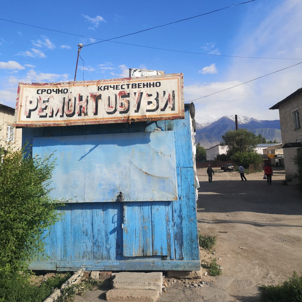 Umso mehr freuen wir uns, als wir endlich in Kyzart ankommen. Es dauert bis wir überhaupt einen Menschen sehen, das Dorf scheint wie ausgestorben zu sein. Auch die Bushaltestelle ist nur ein Mini-Häuschen im Nirgendwo. Ob hier überhaupt eine Marschrutka kommen wird? Wir rasten erstmal.
