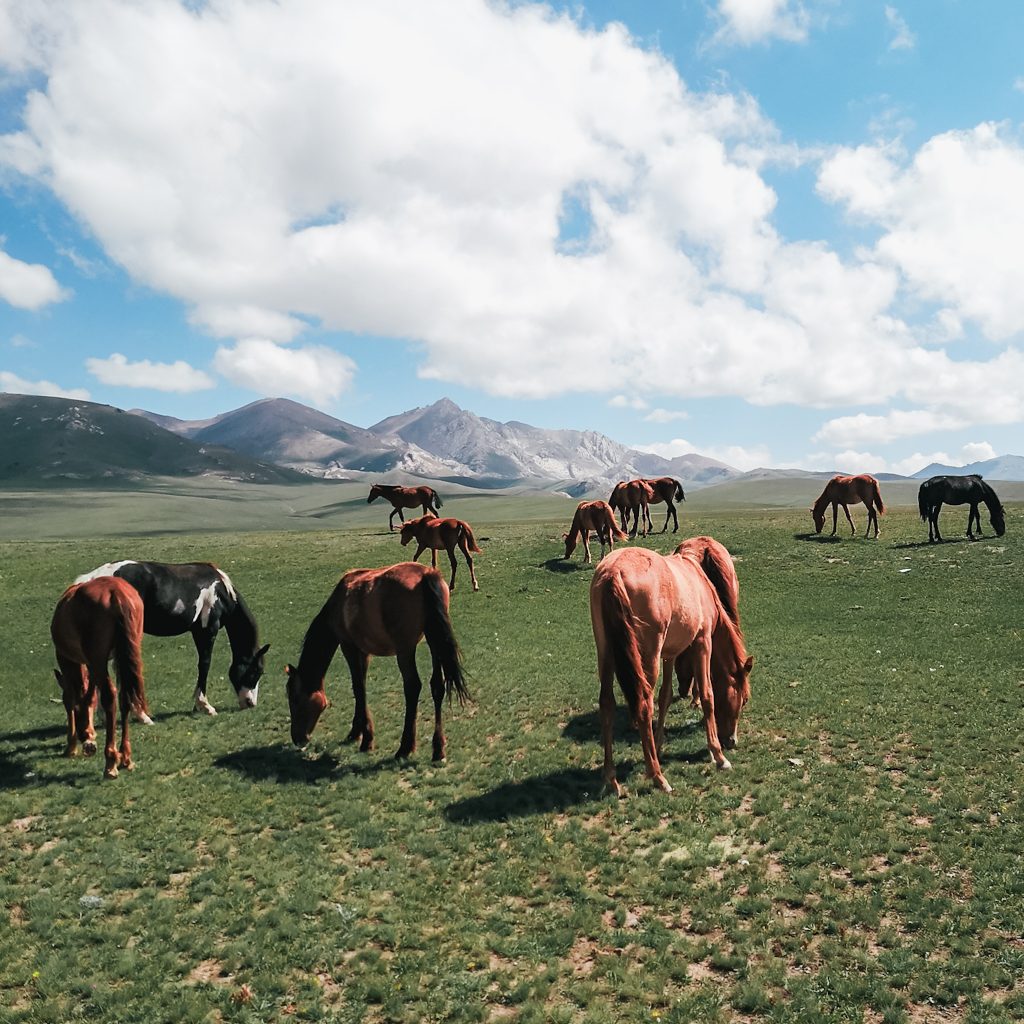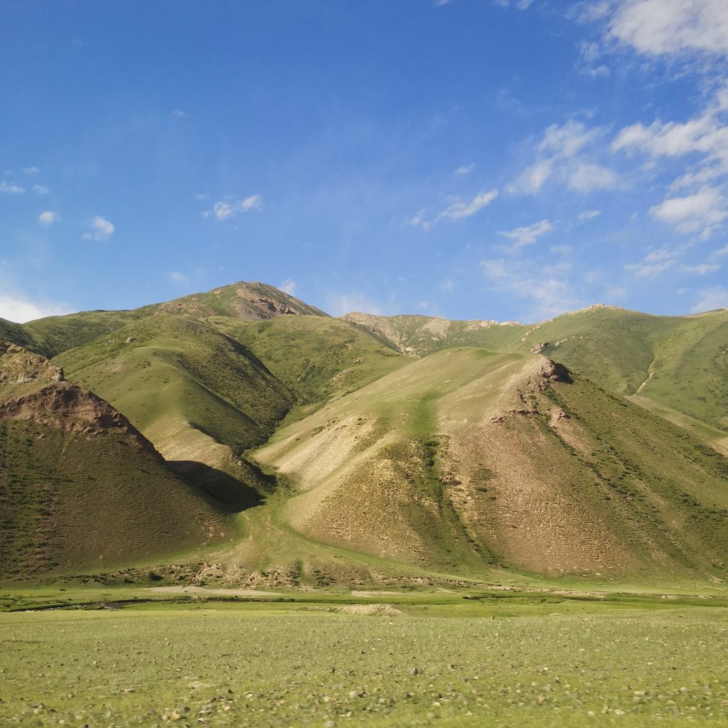 Die Nacht ist kürzer als gedacht und die Reisegruppe Germaniya startet früh, allerdings etwas angeschlagen vom Bier Richtung Kotschkor. Die ruckelige Fahrt schlägt uns etwas auf den Magen und wir sind froh, als wir am frühen Nachmittag in Kotschkor ankommen. Von dieser kleinen Stadt starten die meisten Touren an den Songköl-See. Mit einem Taxi kann man von hier in ca. zwei Stunden hoch zum See fahren und dort in einer Jurte übernachten. Mit dem Pferd kann man sich von Kyzart, einem ca. 2 Stunden entfernten Dorf ebenfalls hoch zum See reiten lassen. Zu Fuß kann man ebenfalls von dort starten, benötigt aber eine Zwischenübernachtung bis man oben am See ankommt. Jonas hat sich vorab schon gut informiert, trotzdem klappern wir ein paar „Touristeninformationen“ ab. Diese sind hier allerdings keine staatlich geförderten Infozentren, die kostenfrei eine Beratung zur Verfügung stellen, sondern Tourenanbieter, die in jeder/jedem Tourist:in eine potenzielle Einnahmequelle sehen. Insbesondere mit den Taxifahrten zu Destinationen, zu denen keine öffentlichen Verkehrsmittel fahren, wird hier gutes Geld verdient. Beim Vergleich der Anbieter wird immer der gleiche Preis genannt. Da auch die Übernachtungen nicht sehr günstig sind, entscheiden wir uns für folgende Route: