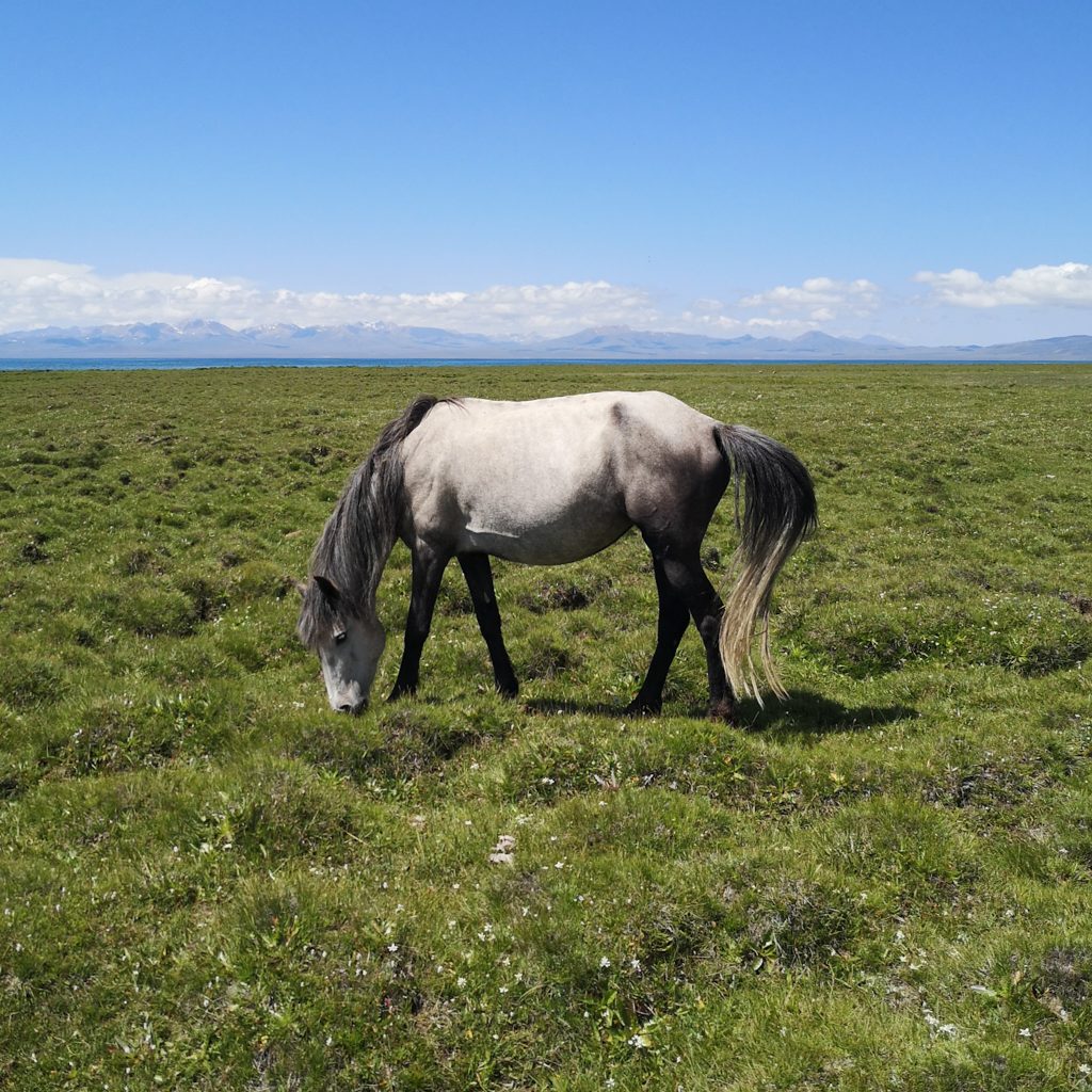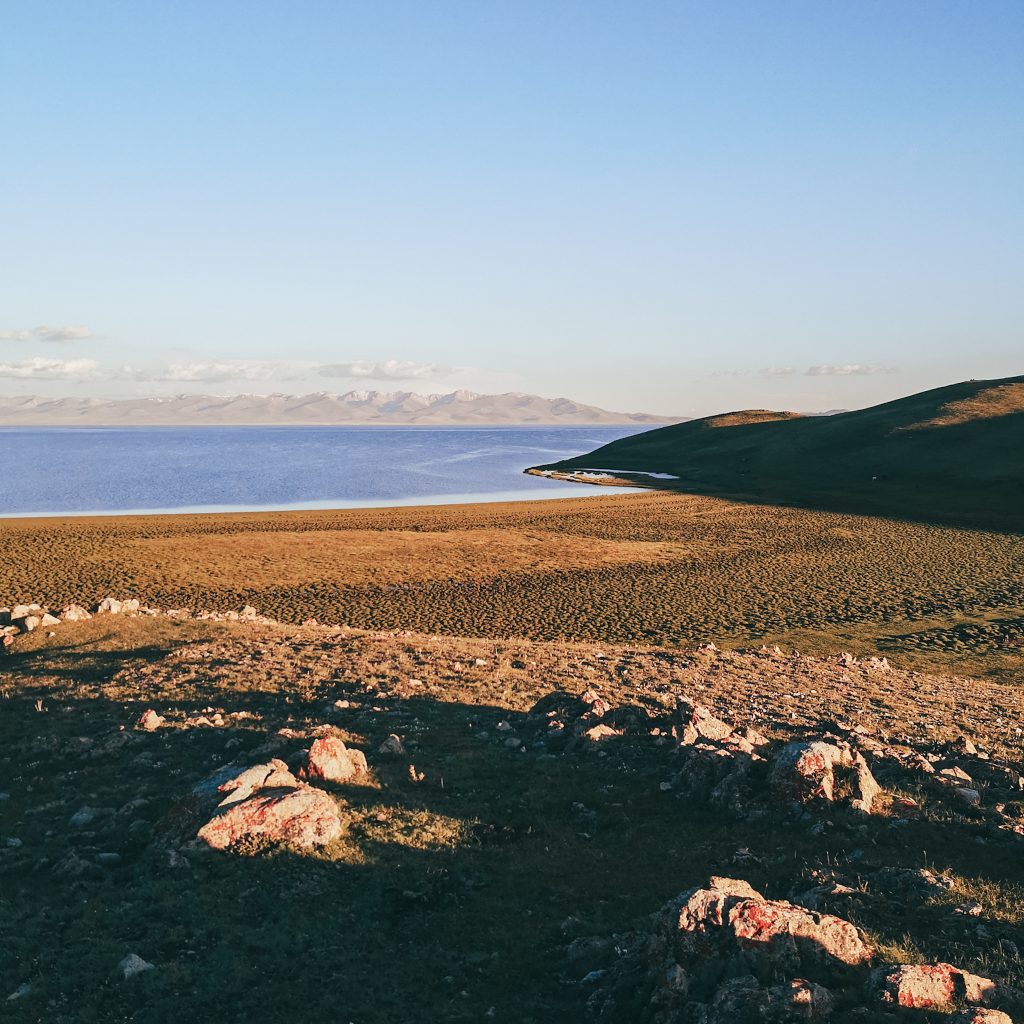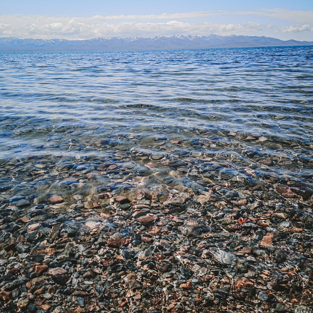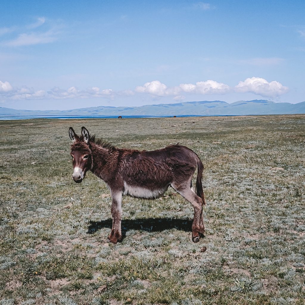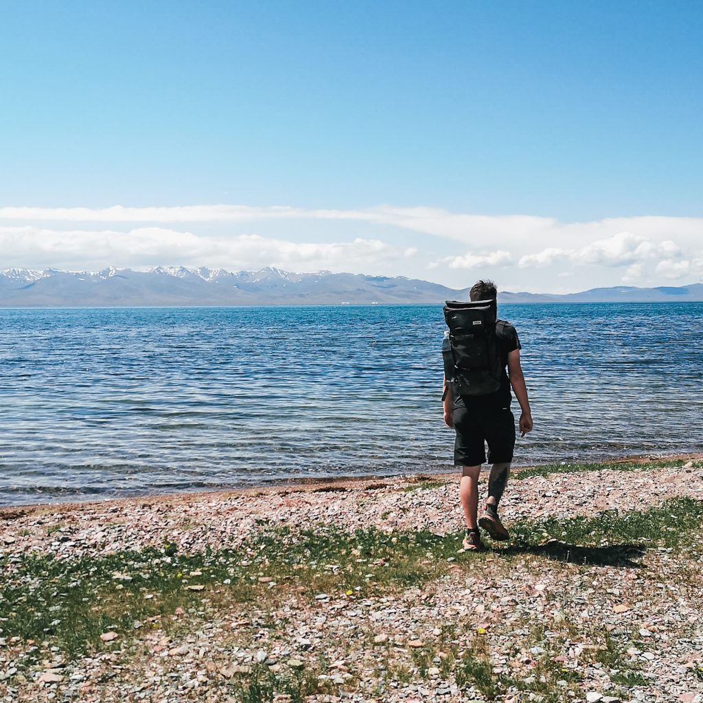 Immer wieder laufen wir an Jurtencamps vorbei. Wir haben vorab schon gelesen, dass es viele touristische Jurtencamps im Osten und Süden des Sees gibt, wir hoffen auf etwas weniger Andrang im Norden. Je länger wir laufen, desto weniger Jurte sehen wir. Der ebene Weg führt entlang des Sees und wir sind ganz alleine.
