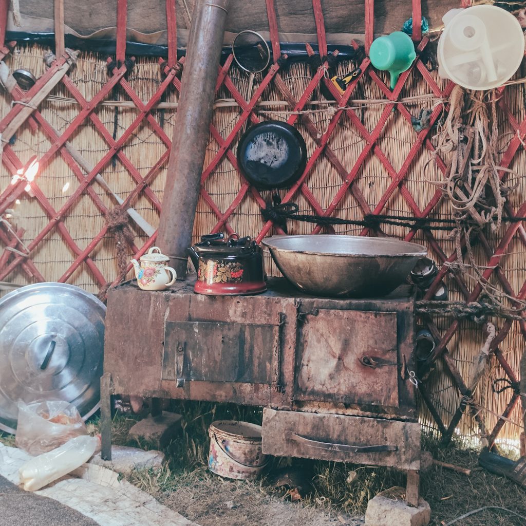 Nazgul schneidet auf dem Tisch ein paar Zwiebeln, sie scheint direkt weiter zu kochen. Okay, wenn wir das gewusst hätten, wären wir etwas zurückhaltender mit dem Brot gewesen. Das Rezept scheint simpel zu sein: Zwiebeln in Öl anbraten, Nudeln und Wasser hinzu. Ein kleines Gewürztütchen sorgt für den Geschmack und so wird das ganze ein bisschen auf dem Ofen gekocht. Die Feuerstelle wird hier übrigens, wie oftmals in Kirgisistan, mit trockenen Kuhfladen befeuert. Holz gibt es so hoch über der Baumgrenze schließlich nicht. Getoppt wird das Nudelgericht übrigens mit einem Spiegelei. Wir sind mehr als zufrieden mit der üppigen Schüssel Nudeln und sind darüber hinaus mehr als gesättigt.