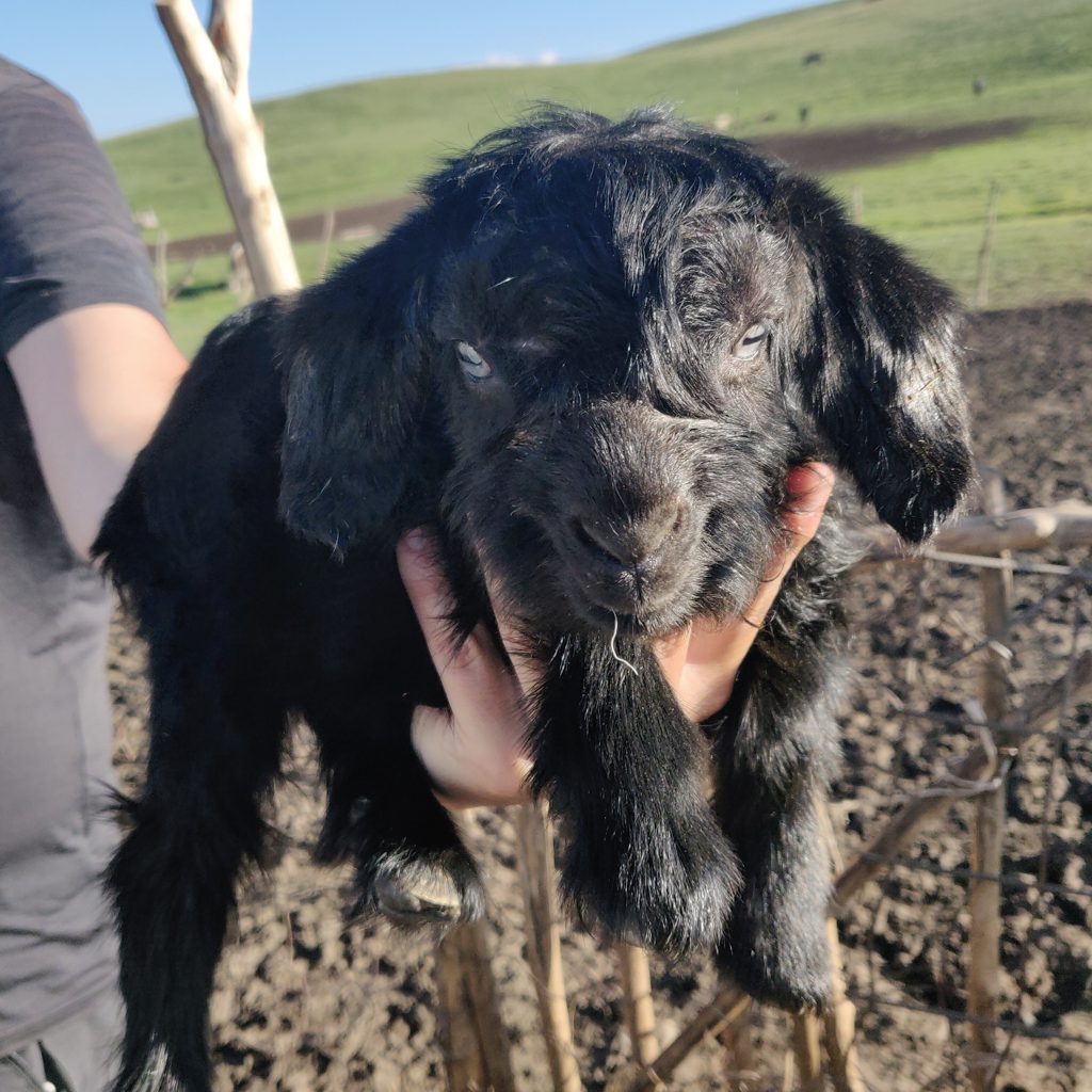 Nasdan zeigt uns auch zwei kleine Ziegenbabys. Sie klettert kurzerhand über den Zaun des Geheges und drückt Caro und Konsti die beiden kleinen Ziegenbabys in den Arm.